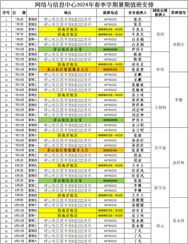 为了更好地服务广大师生,网络与信息中心暑期工作安排如下: