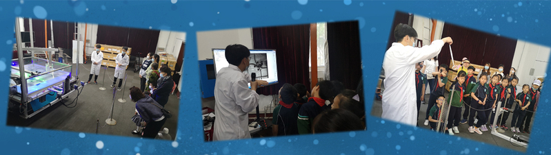大型风-浪-流实验室水槽实验:通过造波机造波和风机造波两种实验,进行海浪模拟,了解海浪的种类和海浪的成长过程,从而认识海洋中的小尺度现象。