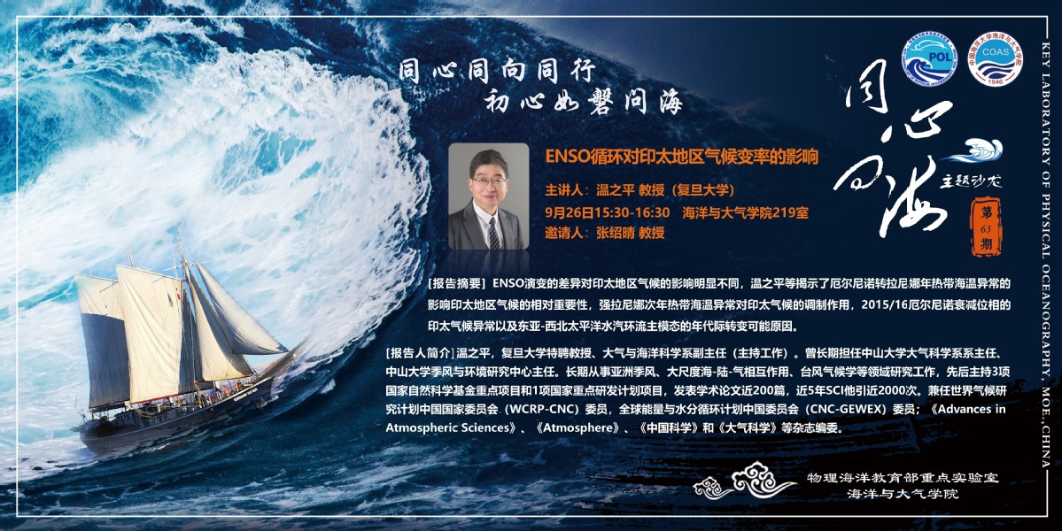 【同心•问海 主题沙龙 62-63】中高纬下垫面热力状况影响气候的机制:大气瞬变涡旋强迫动力学/ENSO循环对印太地区气候变率的影响