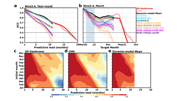 上述工作通过整合DL模型与动力学模式各自的独特优势,显著提高了ENSO预报能力,为气候预报研究开辟了新途径。通过DL模型和动力学模式的不断改进与完善从而获得更准确、更可靠的ENSO预报,这也为应对气候变化挑战提供了有力支持。研究工作得到了国家自然科学基金、国家重点研发计划、海南省科技专项基金和山东省自然科学基金等项目的共同资助。