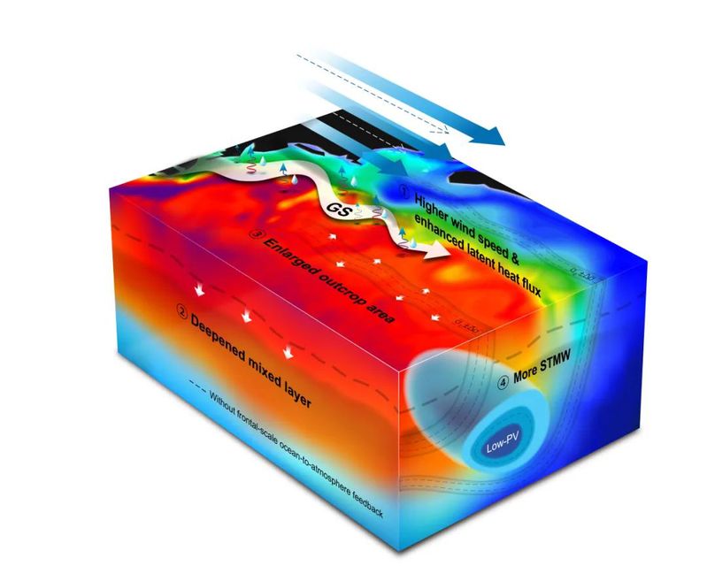 图1:湾流锋面驱动的海气耦合对北大西洋副热带模态水形成的控制机理。