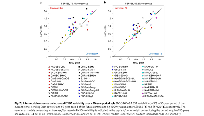 ENSO(厄尔尼诺-南方涛动)现象是地球气候系统中最强的年际气候变异信号。ENSO通过遥相关强迫作用,可以对全球极端天气灾害、渔业生态环境及人类经济社会产生广泛而深远的影响,比如中国北方夏季的高温干旱和中国南方的低温洪涝。在全球变暖的背景下,ENSO如何响应一直是国际气候研究前沿热点问题。 IPCC(政府间气...