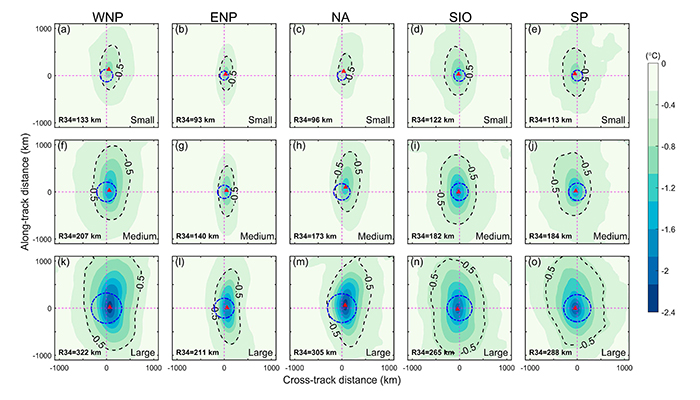 近日,物理海洋教育部重点实验室在台风-海洋相互作用研究领域取得新进展,基于全球台风活跃海区的卫星观测海表面温度和再分析资料,揭示了台风尺寸对海表面降温的调制作用与机理,并提出台风尺寸调控台风强化的海气耦合新机制。研究工作以“Effect of Storm Size on Sea Surface Cooling and Tropical Cyclone Intensif...