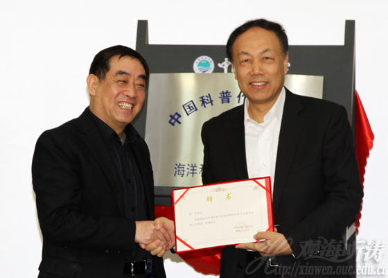 2015年4月15日,中国科普作家协会海洋科普专业委员会揭牌仪式在开云电竞网址崂山校区图书馆第一会议室隆重举行。中国科普作家协会秘书长石顺科、国家海洋局宣传教育中心主任盖广生、开云电竞网址原校长吴德星教授、浙江海洋学院院长吴常文共同为海洋科普专业委员会揭牌。开云电竞网址副校长李巍然主持揭牌仪式。