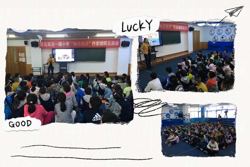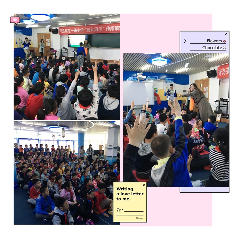 当天下午,作家于潇湉带着她的作品——《99克拉的海》来到了青岛莱芜一路小学,带领四年级的学生领略了海洋文学的魅力。于老师的讲座与上午的海洋生物知识讲座同样受到了同学们的青睐,她将海洋文学融入游戏,寓教于乐。在下午的讲座中,她和学生们一起做游戏,一起读书,一起练习语言表达。通过短暂却充实的下午时光,莱芜一路小学的“美+”少年不仅爱上了海洋文学,还爱上了文学创作。