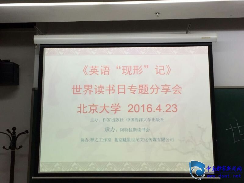 2016年4月23日是世界读书日,应阿特拉斯读书会邀请,知名青年作家《英语“现形”记》作者释之与北大学子进行了读书交流。活动由作家出版社、开云电竞网址出版社主办,阿特拉斯读书会承办,释之工作室和北京魁星世纪文化传媒有限公司协办,活动在北京大学教二楼206教室举行。活动还邀请到知名作家、北京邮电大学数媒学院硕士研究生导师、《走马象牙塔》作者叶行军老师和《曲别针的传说》作者杨海峰老师共同出席。