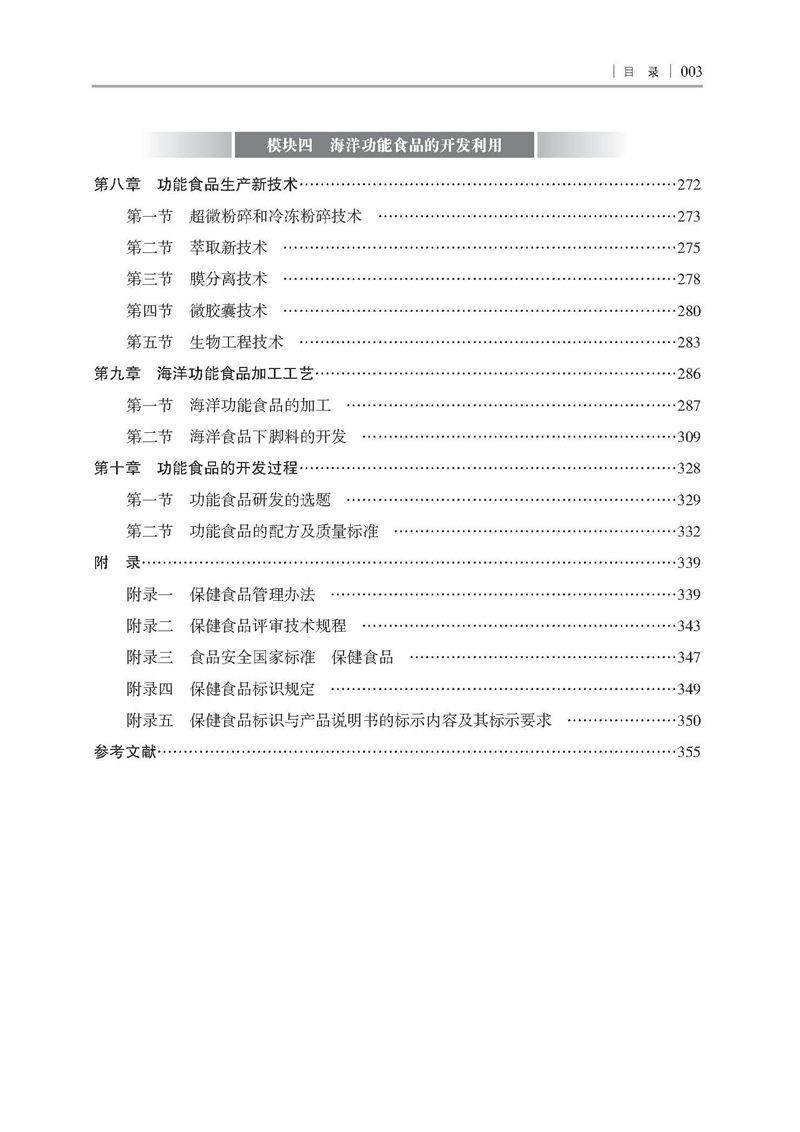 本教材分4个模块,共10章,主要阐述了海洋生物活性物质的结构、种类和功能,海洋功能食品的生物资源,海洋食品的保健功能及评价方法,功能食品生产的新技术,各类海洋功能食品的加工工艺和开发过程。