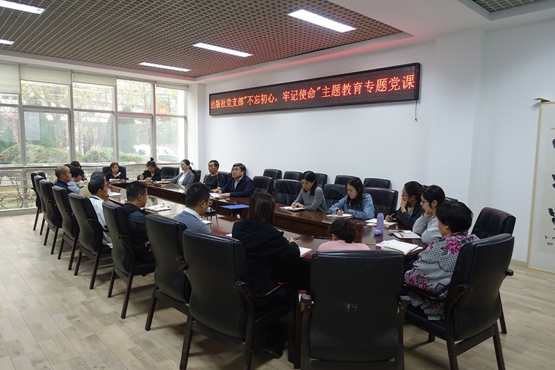 2019年10月16日下午,出版社党支部杨立敏书记在会议室给全体党员上了一堂“不忘初心做好学术出版,牢记使命助推‘双一流’建设”的党课。