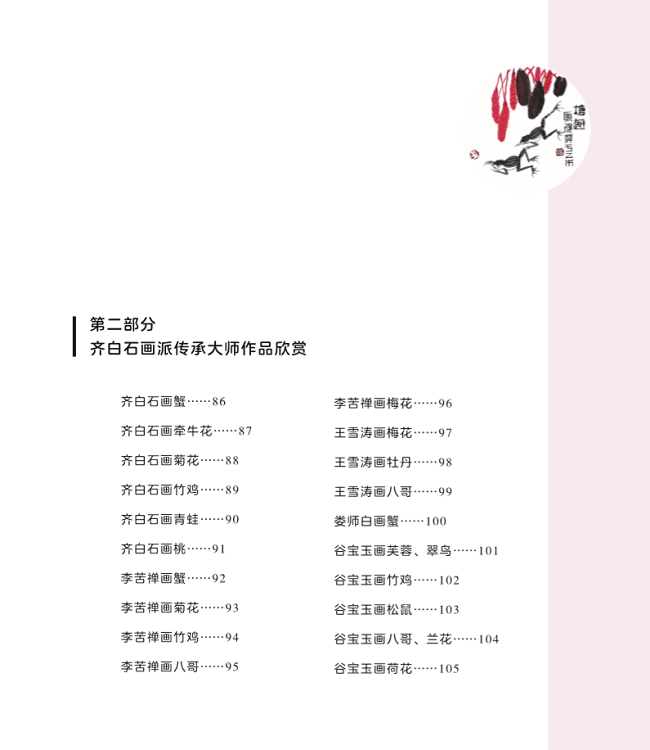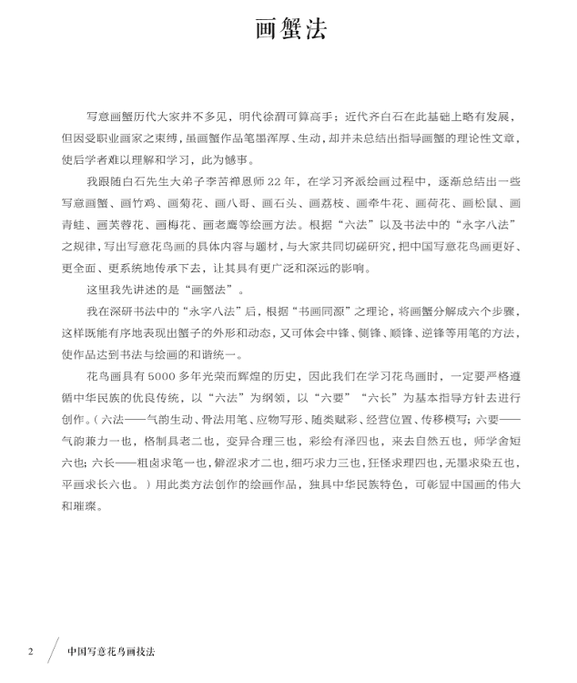 花鸟画是中国画的一个重要的组成部分,是中华民族屹立在世界艺坛上的一颗璀璨的明珠,是具有非常独特而鲜明的艺术风格的民族绘画。为更好地培养花鸟画人才,本书作者将多年内研究学习的齐白石的绘画风格,结合李苦禅和王雪涛恩师的绘画特点,将在课堂教学的现场讲课画稿及精选的齐白石、李苦禅大师的精品作品作为范稿呈现给学习花鸟画的学生。