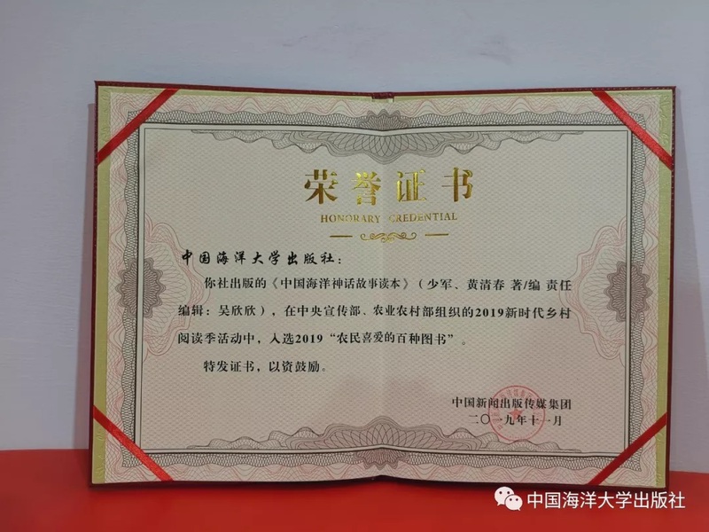 2019年11月30日,由中宣部印刷发行局主办,中国新闻出版传媒集团有限公司承办的2019“农民喜爱的百种图书”评选活动揭晓,并在四川成都 “2019新时代乡村阅读季”天府书展举行发布会暨颁奖仪式。