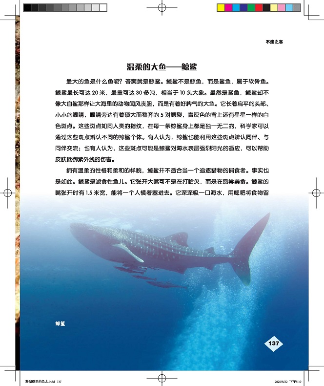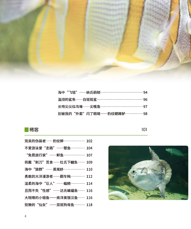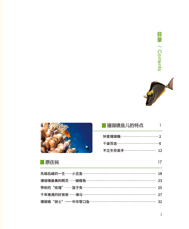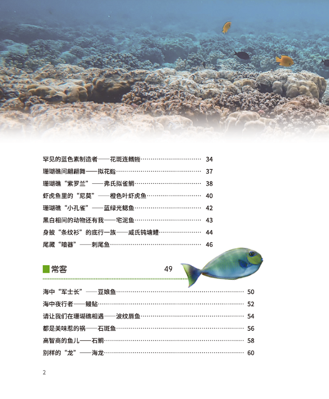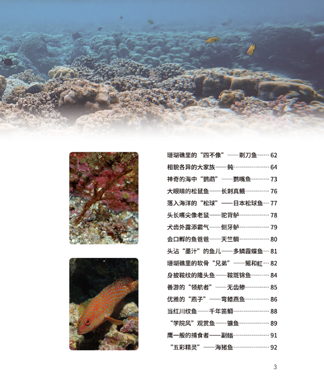 本书先介绍了珊瑚礁鱼儿所钟爱的珊瑚礁,它们千姿百态,不乏生存高手,再将珊瑚礁鱼儿分为“原住民”“常客”“稀客”“不速之客”,并选取其中有代表性的物种介绍其形态和摄食、繁殖等习性。“原住民”是那些生存依赖于珊瑚礁环境的鱼儿,如小丑鱼、巴氏海马;“常客”是那些经常造访珊瑚礁的鱼儿,如石斑鱼、石鲷;“稀客”是那些出于觅食、清洁等原因偶尔在珊瑚礁出没的鱼儿,如翻车鲀、蝠鲼;“不速之客”则是体型较大或性格凶猛的鱼儿,如鲨鱼。