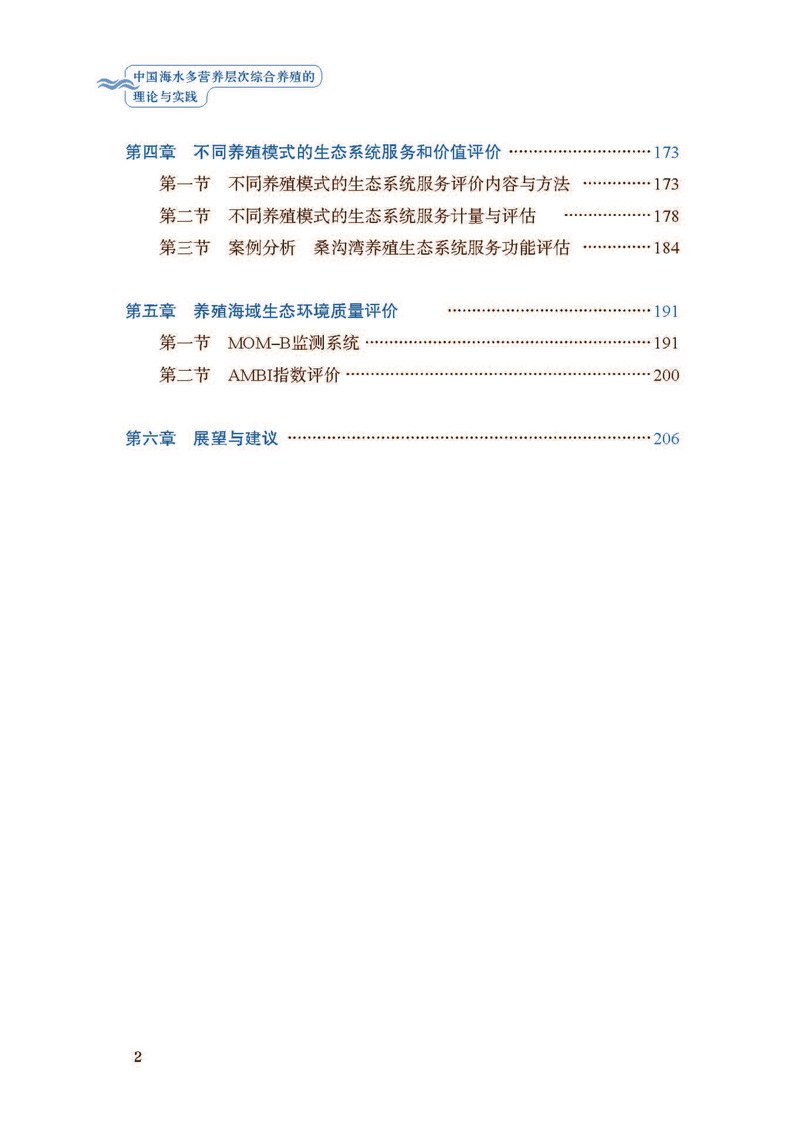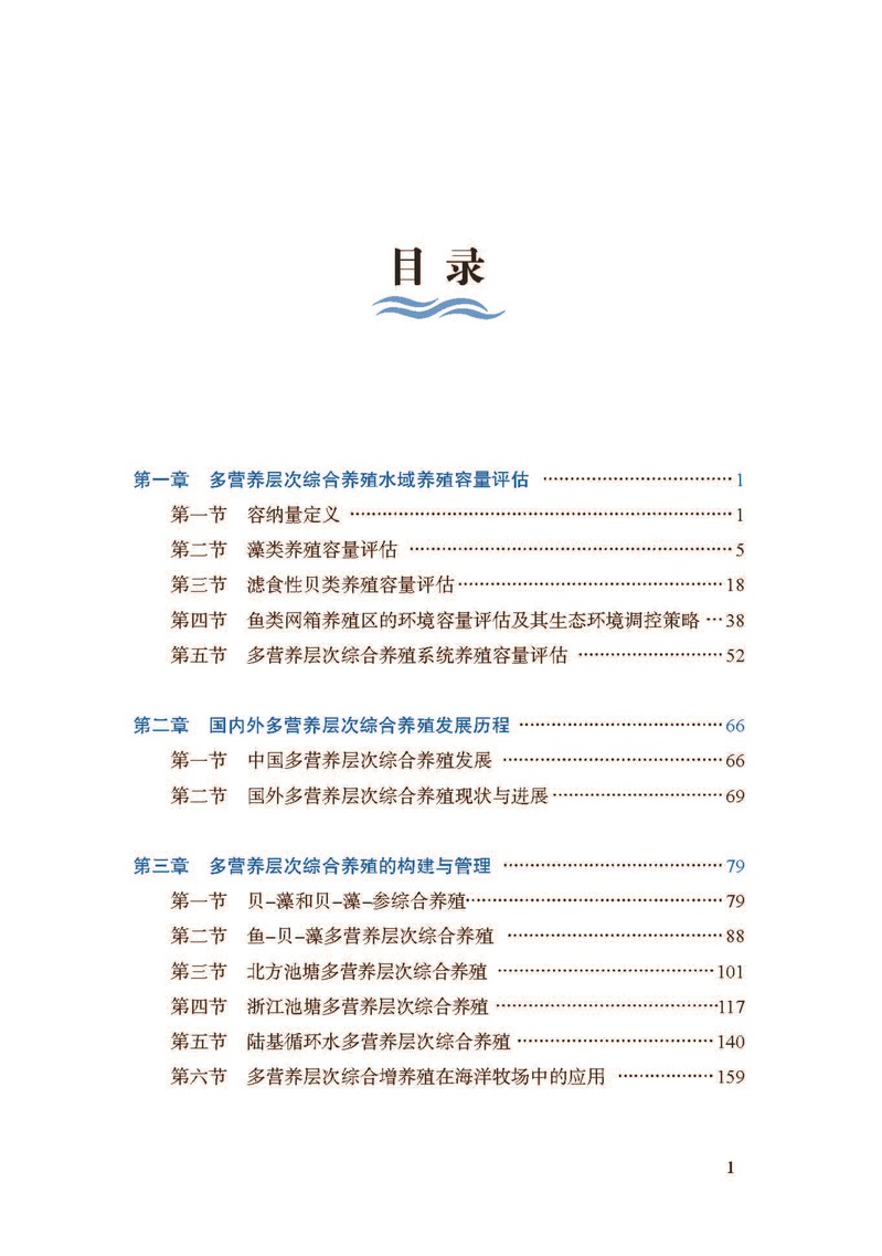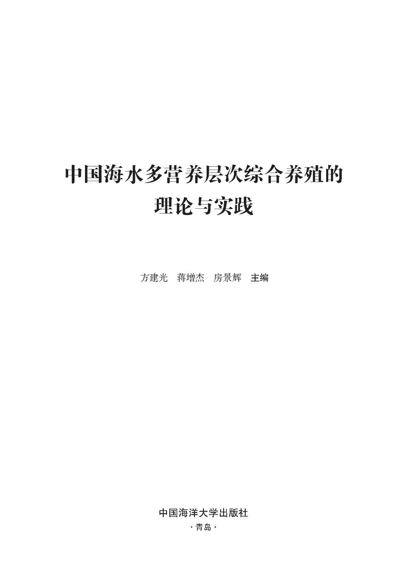本书系统论述多营养层次综合养殖(IMTA),包括多营养层次综合养殖水域养殖容量评估、国内外多营养层次综合养殖发展历程、多营养层次综合养殖的构建与管理、不同养殖模式的生态系统服务和价值评价、海水养殖海域生态环境质量评价、以及多营养层次综合养殖展望与建议。本书主要读者对象是从事水产养殖理论与实践研究的科研人员、高校学生、渔业主管部门的管理者、养殖生产从业者等。