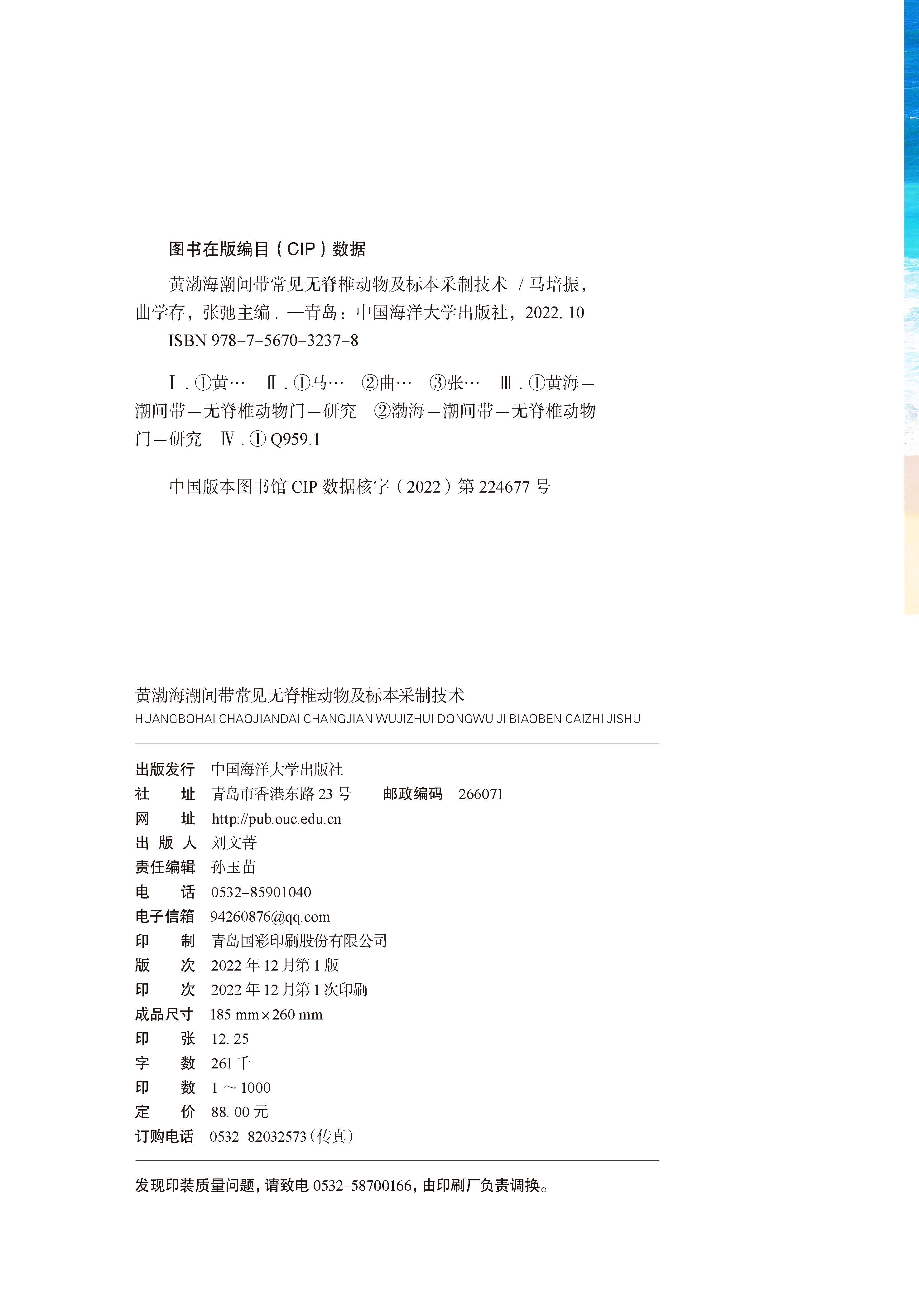 《黄渤海潮间带常见无脊椎动物及标本采制技术》是一部介绍我国黄渤海地区潮间带常见无脊椎动物及其标本采集、制作技术的工具书,适用于到黄渤海开展滨海生物调查研究相关工作的人,包括进行教学、生产实习的生物学、水产学等学科的高校师生及中小学师生。本书总结作者团队多年教学、研究经验,重点介绍了黄渤海潮间带常见无脊椎动物种类、生活习性和分布特征,并附插图;详细介绍了海洋基本地质特征和海洋无脊椎动物标本采集、麻醉、固定、着色等采制技术,便于读者将理论知识与滨海实践结合,提高滨海调查、研究、教学、实习效率。