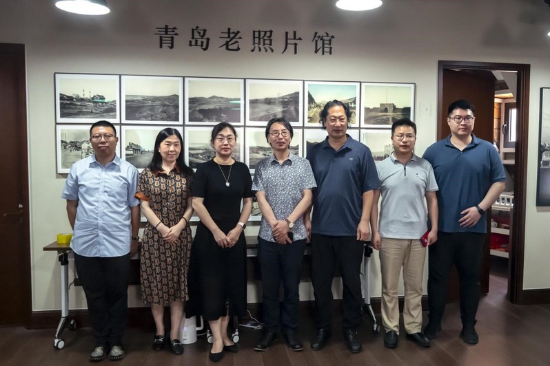 刘文菁(左三)社长一行与青岛老照片馆馆长刘云志(右三)、常务副馆长袁宾久(左四)合影