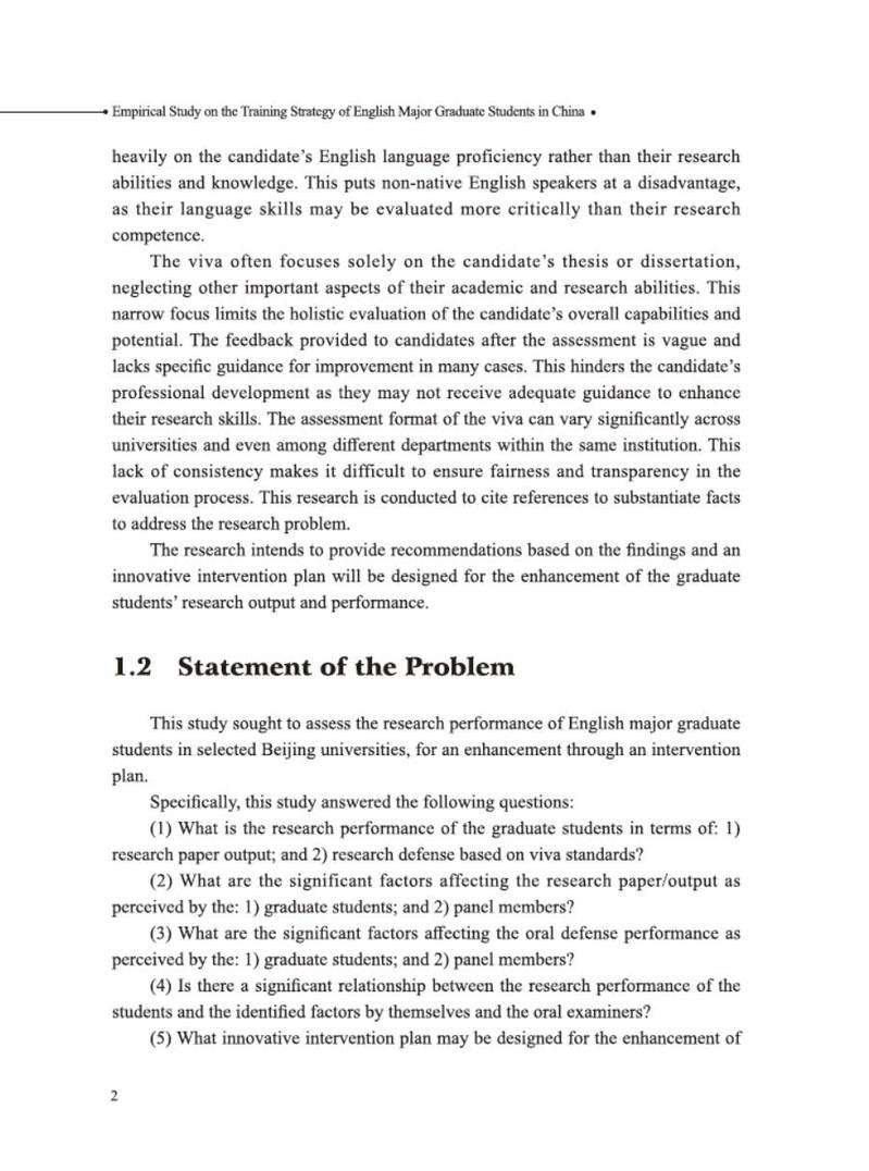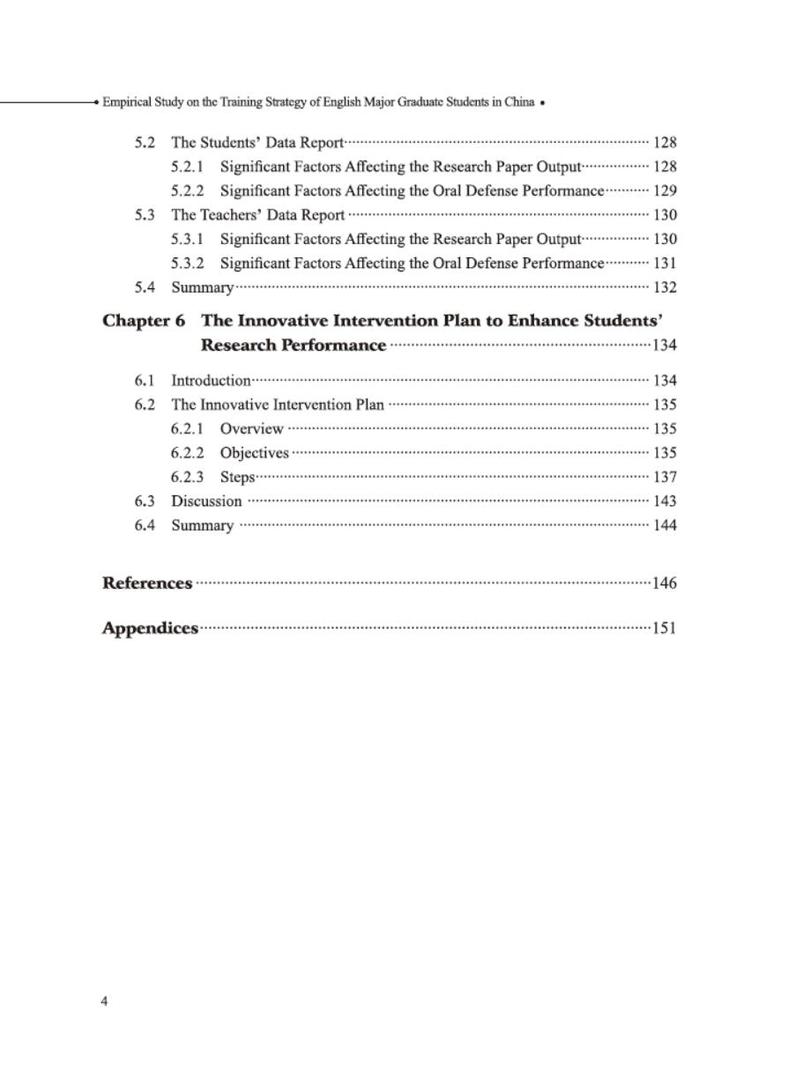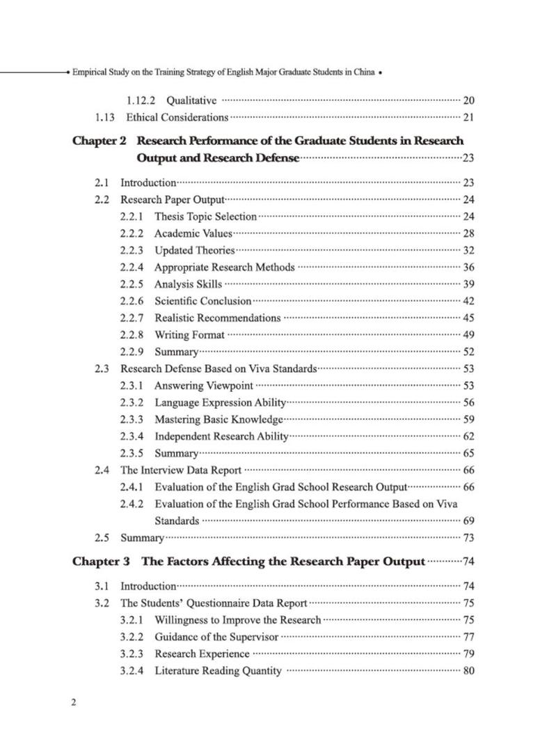 本书第一章介绍了我国英语专业研究生学位授予的背景,指出了学位论文答辩存在的问题。第二章是文献综述部分,包括三个视角:相关的背景理论、论文答辩标准政策和研究文献。第三章详细介绍了研究方法,讨论了研究的可靠性和有效性,以及伦理方面的考虑。第四章根据不同的主题对收集到的数据进行了报告。第五章讨论了与以往研究和背景理论相关的研究结果,有助于为学位论文答辩的研究领域提供新的数据支持和理论贡献。第六章对基于学位论文答辩标准的英语专业学生研究生考核成绩进行分析,总结了其在中国英语专业研究生学位评估中的作用。