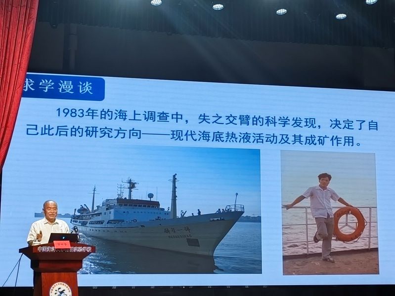 在随后的环节中,翟世奎教授为在场师生带来了一场题为《求学漫谈》的精彩讲座。他结合自身求学经历、与海洋结缘的历程以及不断挑战自我的科研精神,展现了科学家精神的内涵与价值。翟教授的讲述生动而感人,不仅让青少年们感受到了科学家精神的伟大与崇高,更激发了他们勇攀科学高峰、为国家海洋事业贡献力量的决心和信心。