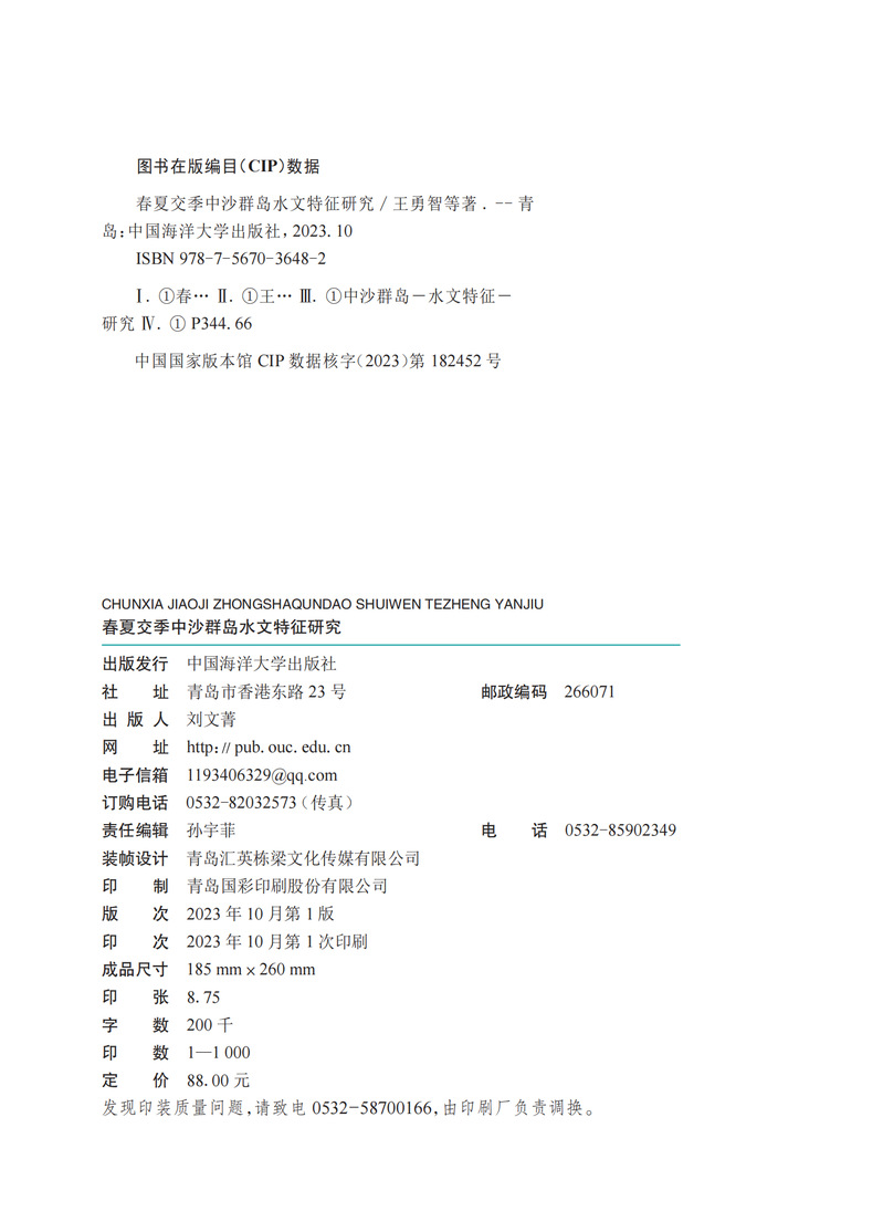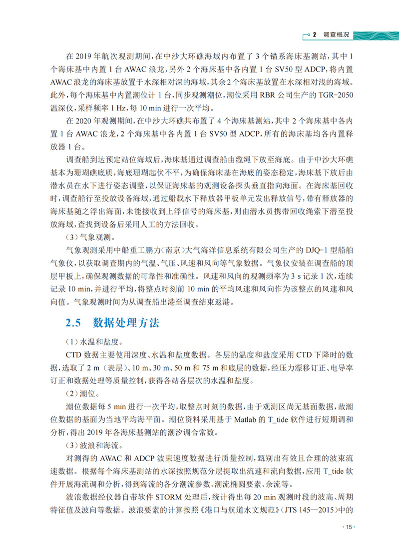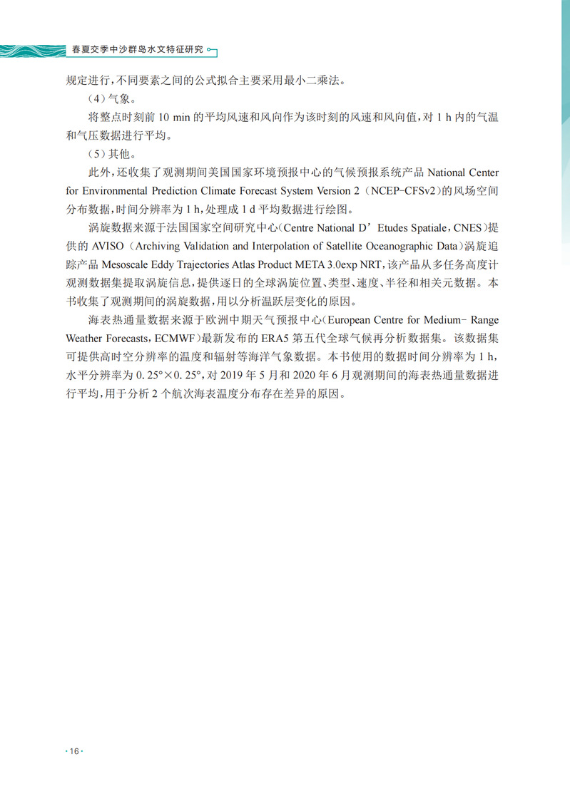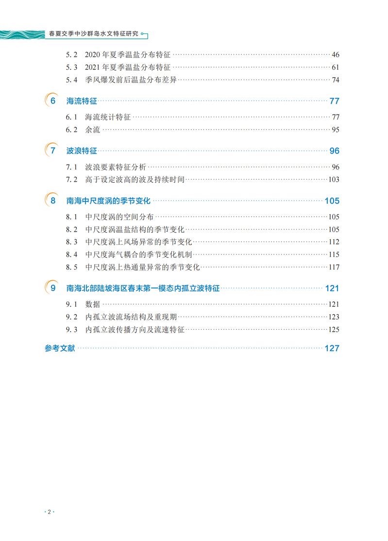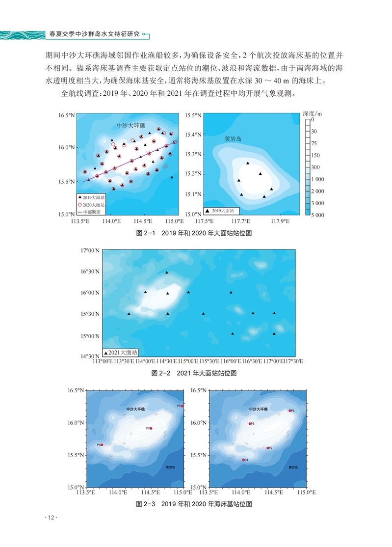 本书基于2019、2020、2021年春季和夏季,自然资源部第一海洋研究所采用锚系定点观测、大面站走航观测等手段,在中沙群岛开展的潮汐、海流、波浪、温盐等观测资料,系统分析了中沙群岛海域春夏交季独特的水文特征,揭示了中沙大环礁内潮位、温盐和海流的分布差异,阐明了中沙大环礁温盐水平和垂向的分布特征,研究了温盐分布特征与中尺度涡的响应,分析了大环礁内波浪分布的特征,并阐明了中沙群岛春夏交季海域悬浮体的分布特征。