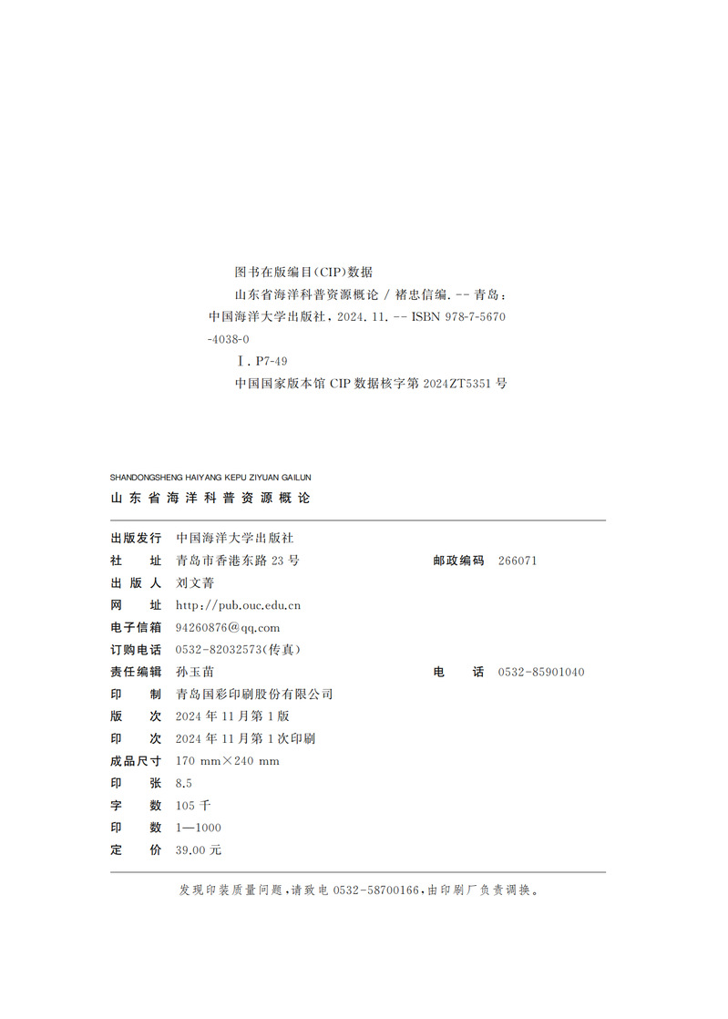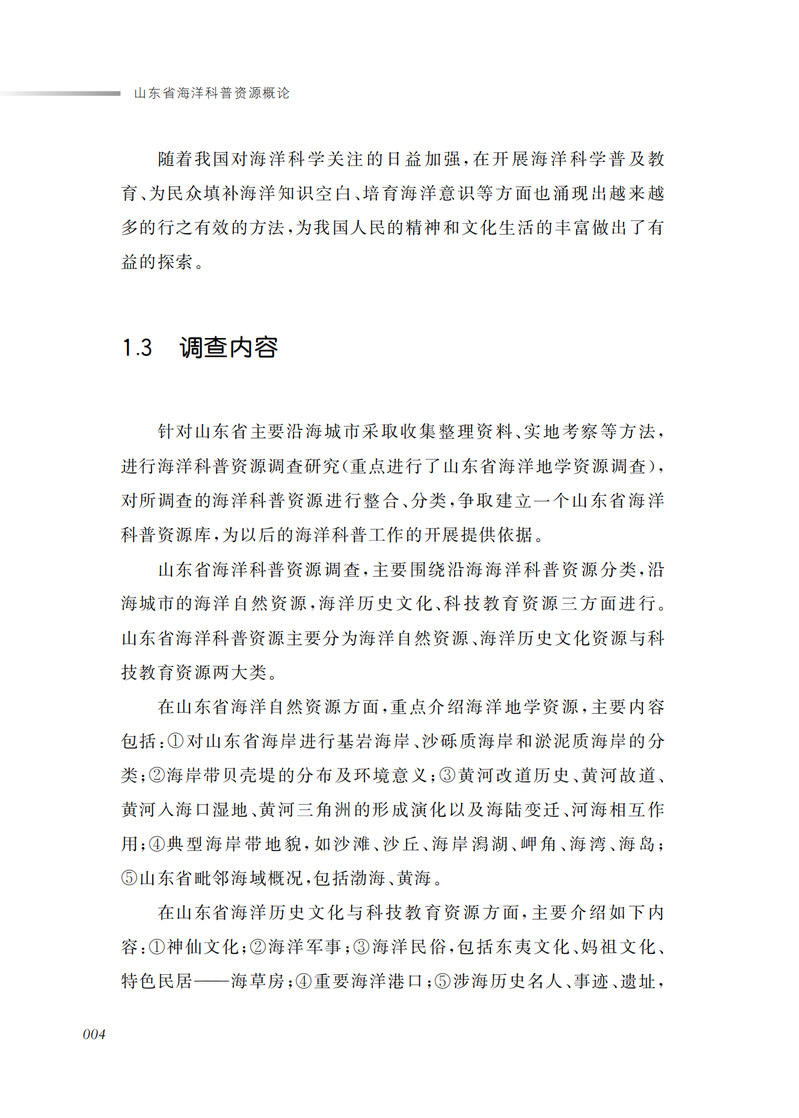本书较系统地阐述了山东在海洋资源、海洋经济、海洋文化、海洋科技、海洋教育、海洋生态等领域的科普资源,重点围绕3个方面展开:山东省海洋科普资源分类,山东省海洋自然资源(尤其是海洋地学资源),海洋历史文化以及教育、科技资源,最后对山东省海洋资源科普的宣传、保护和管理给予了建议。本书图文并茂、深入浅出,注重联系实际,便于科普教学和自学。本书适合作为中小学生和科普工作者的读物,亦可供海洋科学、地理科学、环境科学、海洋历史文化爱好者参考。
