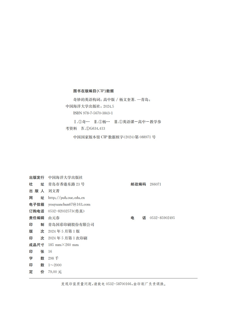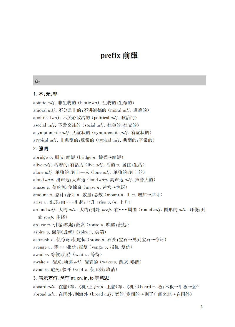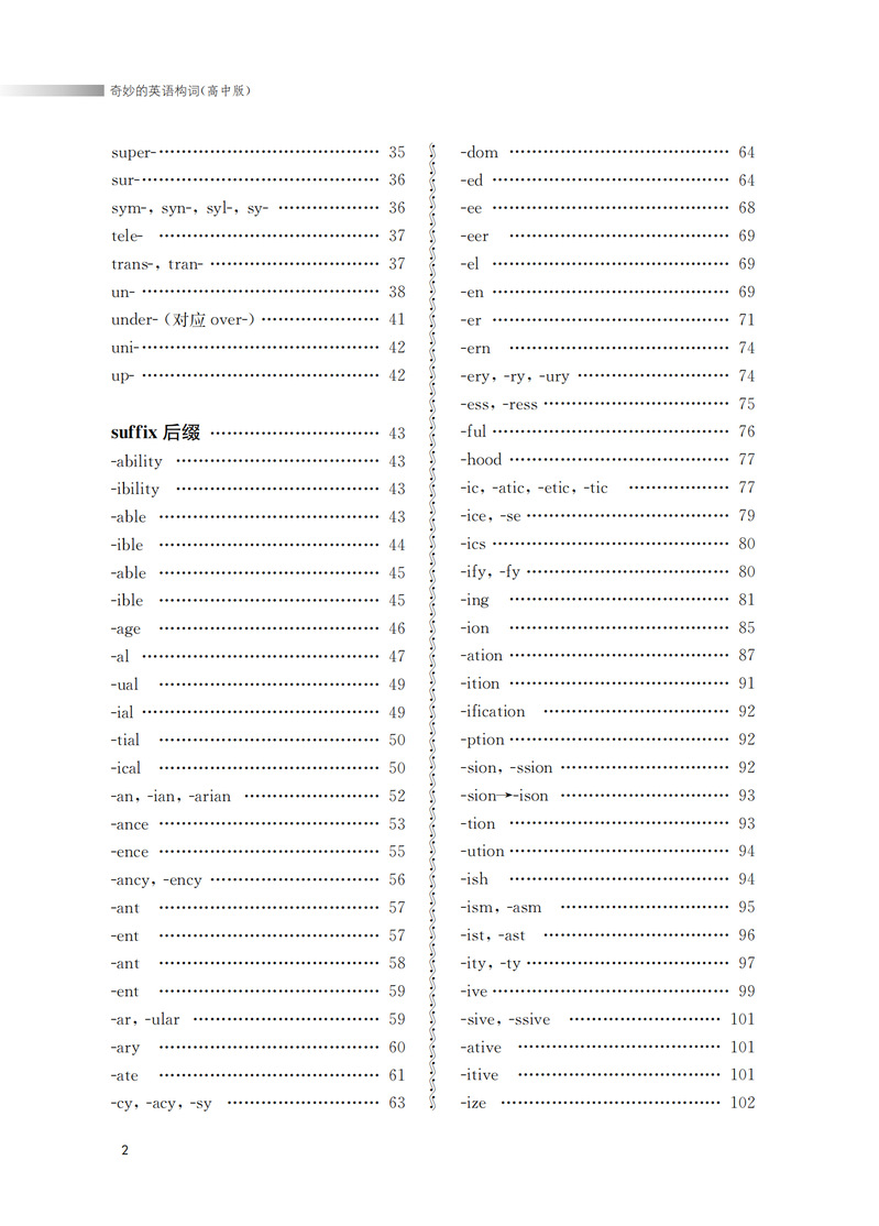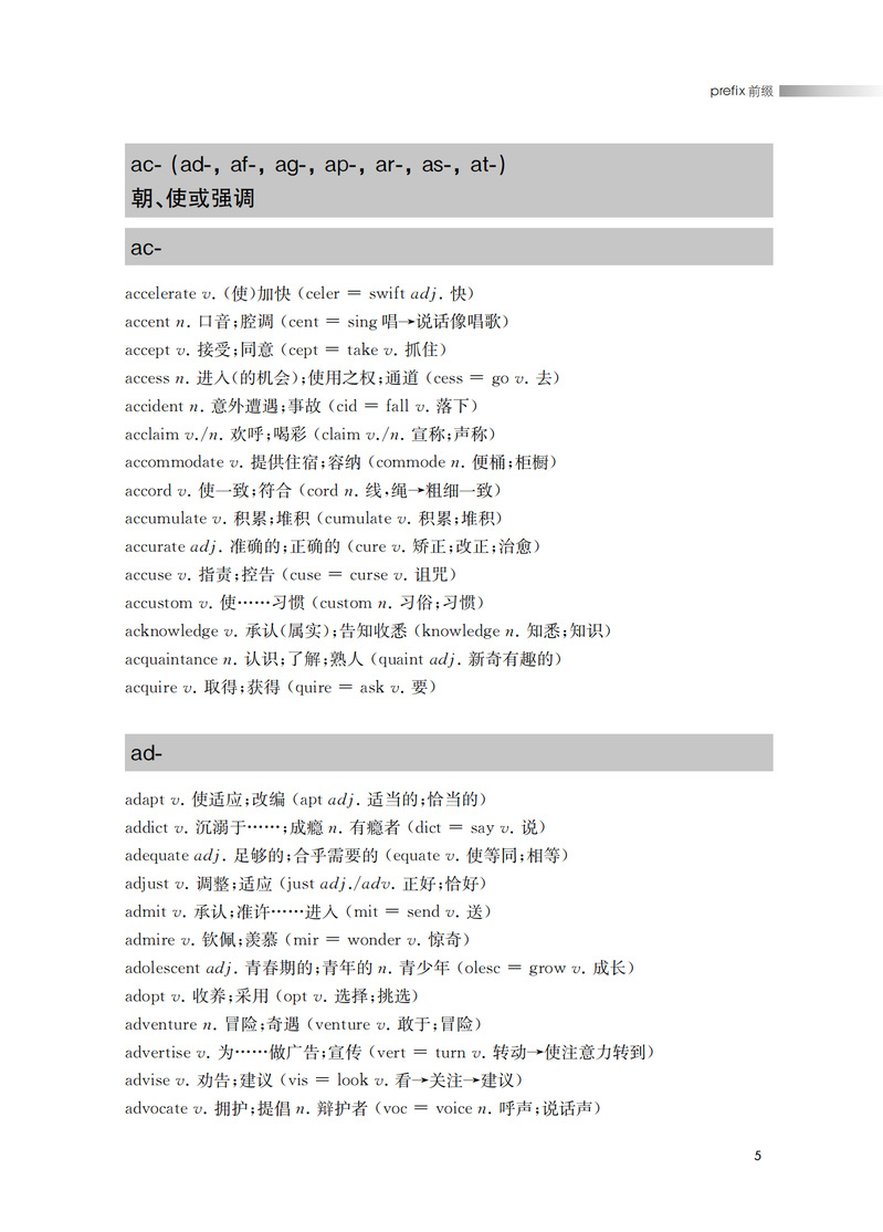 本书从构词法入手,揭示英语单词的内在构词规律。重在引导中学生遵循词根词缀的构词规律,以熟词引出新词的方法,快速、准确地记住单词。本书第一部分是词根。词根是单词的核心。一个词根可以引出与之相关的一串单词。了解一个词根就能记住一群单词。快速提高词汇量。第二部分是词缀。(前缀和后缀)均为常用的词缀。配以中学英语中的高频词汇,加深学生的记忆,让学生不再为记不住单词而苦恼。前缀改变单词的意义,后缀改变词的语法作用。因此,掌握一定的数量的前缀和后缀,学生能准确运用单词。从而达到从认识到运用的飞跃。