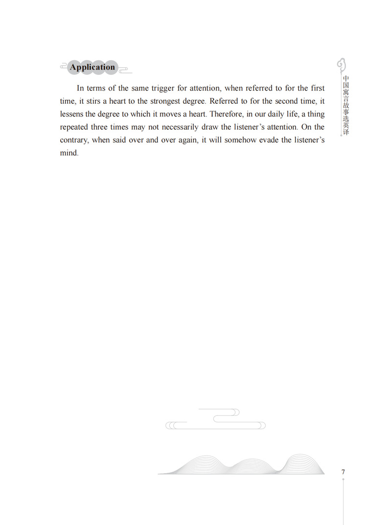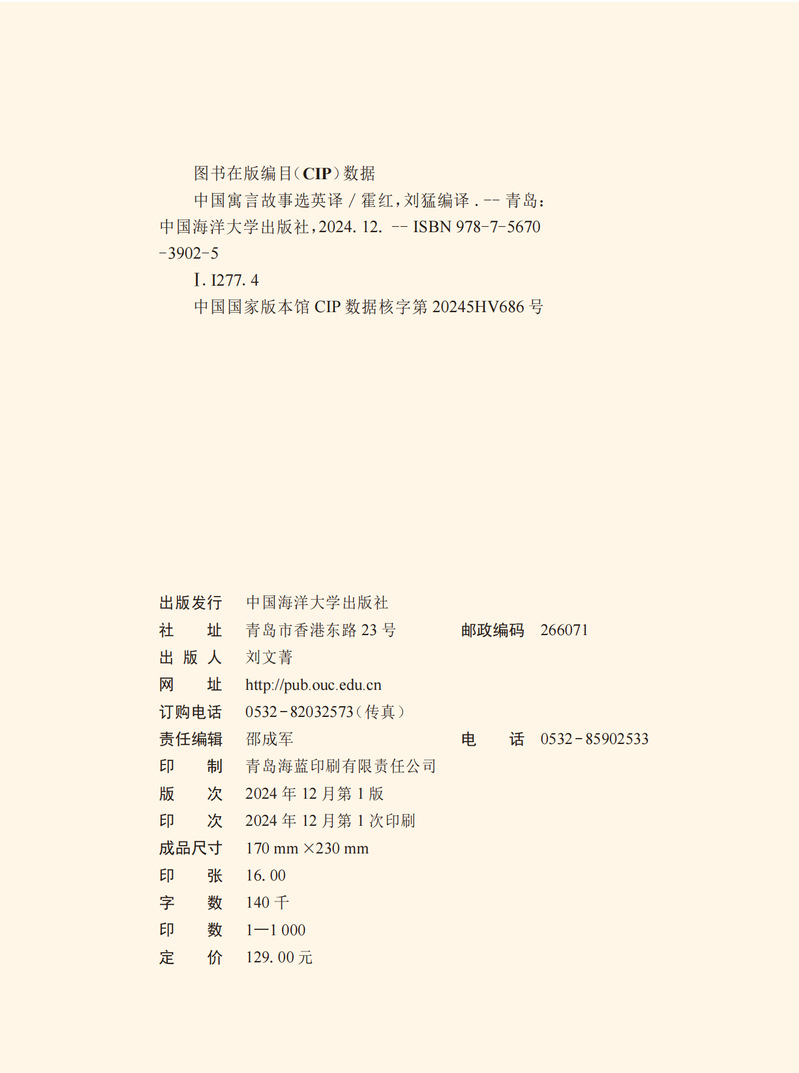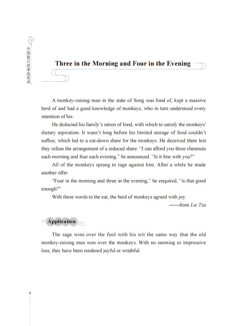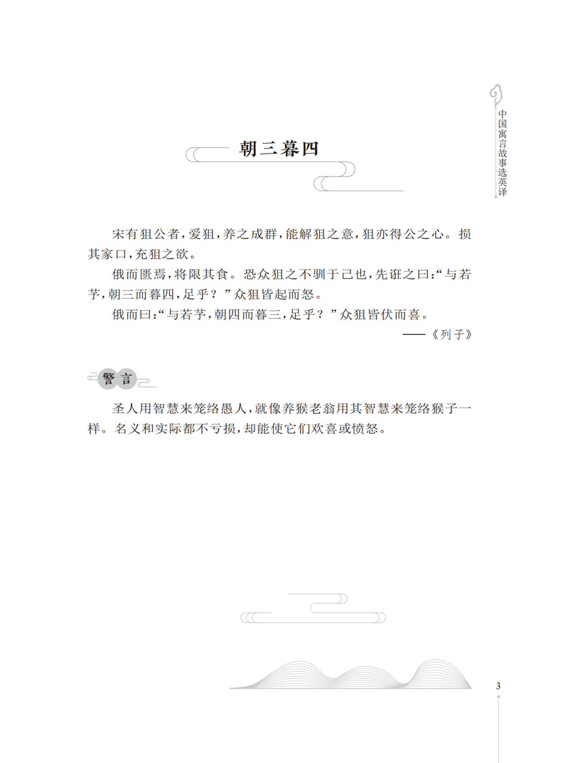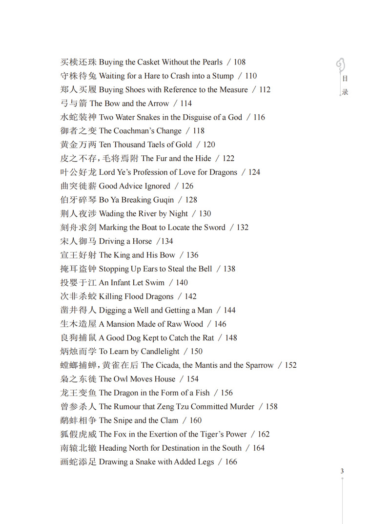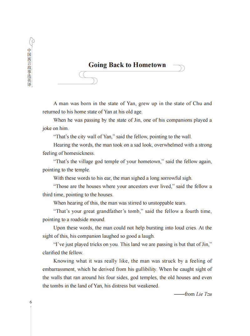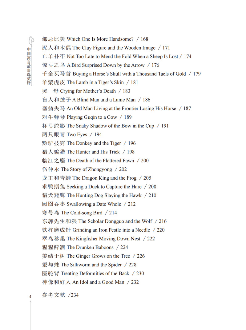 本书选择100余首的中国寓言故事进行英译,包括那些脍炙人口、人们耳熟能详的《愚公移山》《两小儿辩日》《掩耳盗铃》《塞翁失马,焉知非福》《田忌赛马》《买椟还珠》等作品,寓言主要选自《列子》《孟子》《庄子》《吕氏春秋》《说苑》等中国古代经典名著。本书借鉴《伊索寓言》的语言风格,并在原文本结尾处附上故事“寓意”,帮助读者厘清故事中所阐述的道理以及对人生的可能指导。读者对象为西方的成人读者、高等院校中国典籍研究者以及外国语言文学专业研究生、本科生。