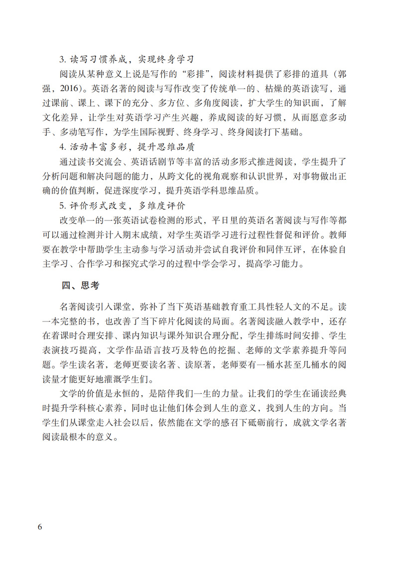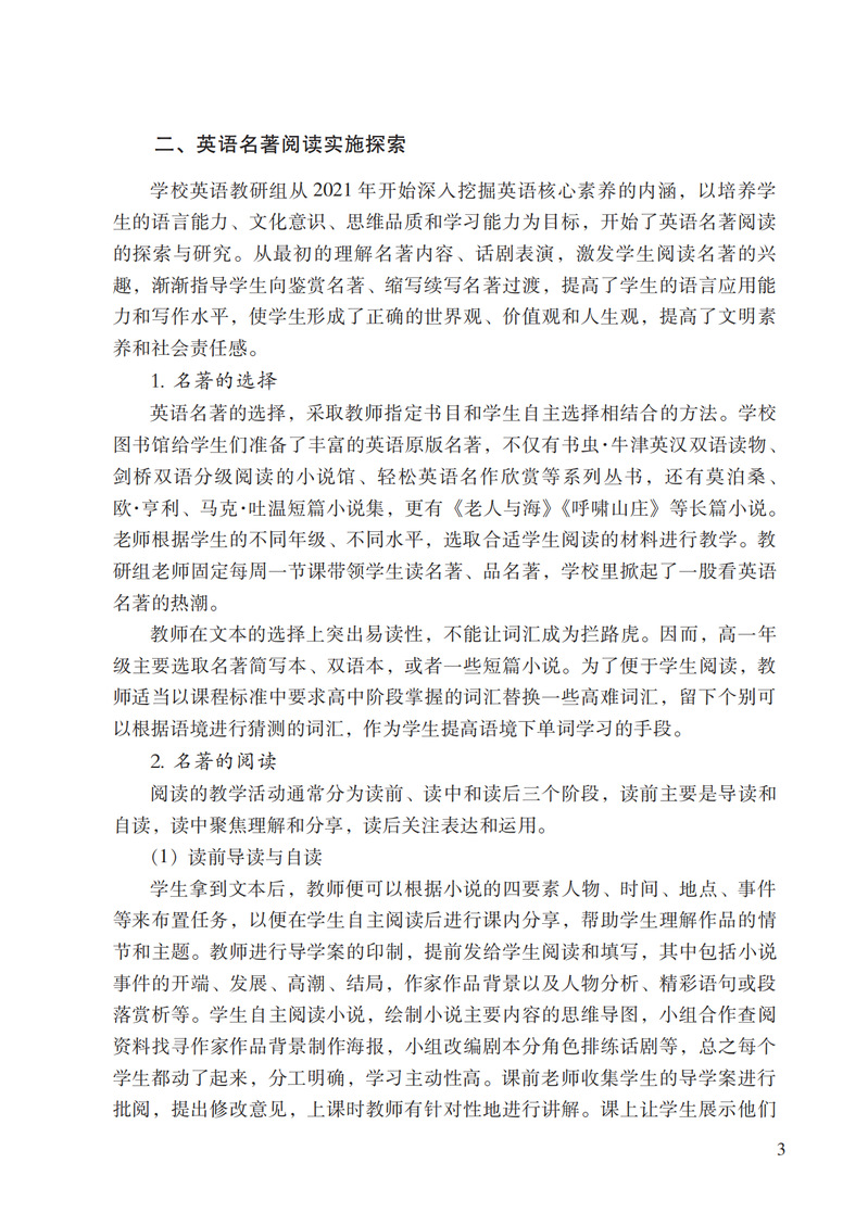 本书分为教学研究和教育教学管理两大板块,通过英语名著阅读教学、信息化教学和国际化教育的实践及教学课题的引领,探索如何提升高中生学科核心素养的路径与方法。通过班级管理、学校管理、教育随感及管理课题的形式,探索如何引导学生形成个人终身发展和社会发展需要的必备品格,将立德树人的根本任务放在首位,提升学生的综合素养与能力,使学生能够适应未来社会,成为一个全面发展的人。本书的读者对象为高中学生、家长与老师,尤其对高中的教师与管理者,有着很好的借鉴和引导作用。山东省教育科学“十四五”规划课题《基于学科核心素养的高中英语名著读后续写“三读三写”学习活动研究》的项目成果。
