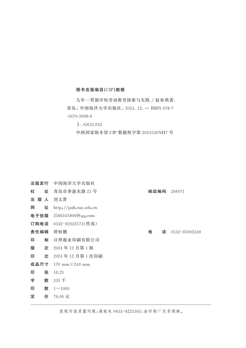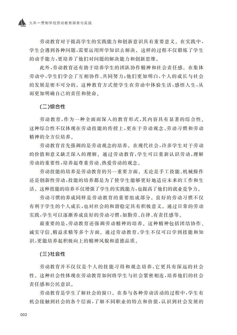 本书是关于九年一贯制学校劳动教育的理论与实践专著。全书共十二章和两个案例实践,详细探讨了劳动教育的理论基础、现状分析、问题与挑战、规划与实施、课程设计、教学方法、师资培养、家庭与社会支持、社会认知和接受度、评价体系以及典型案例实践。本书旨在为九年一贯制学校提供劳动教育的理论和实践指导,帮助学校更好地开展劳动教育,促进学生全面发展。本书内容丰富、系统性强,理论与实践相结合,具有较高的参考价值。本书还注重对劳动教育现状的分析和问题解决策略的探讨,具有较强的针对性和实用性。