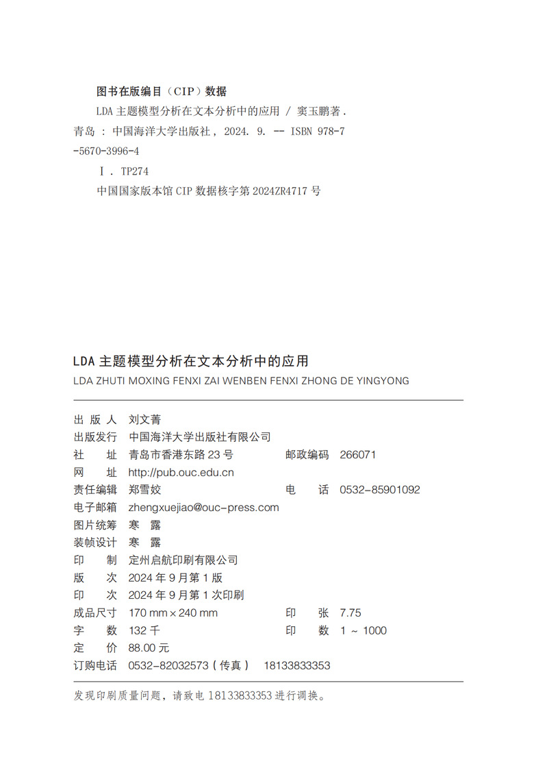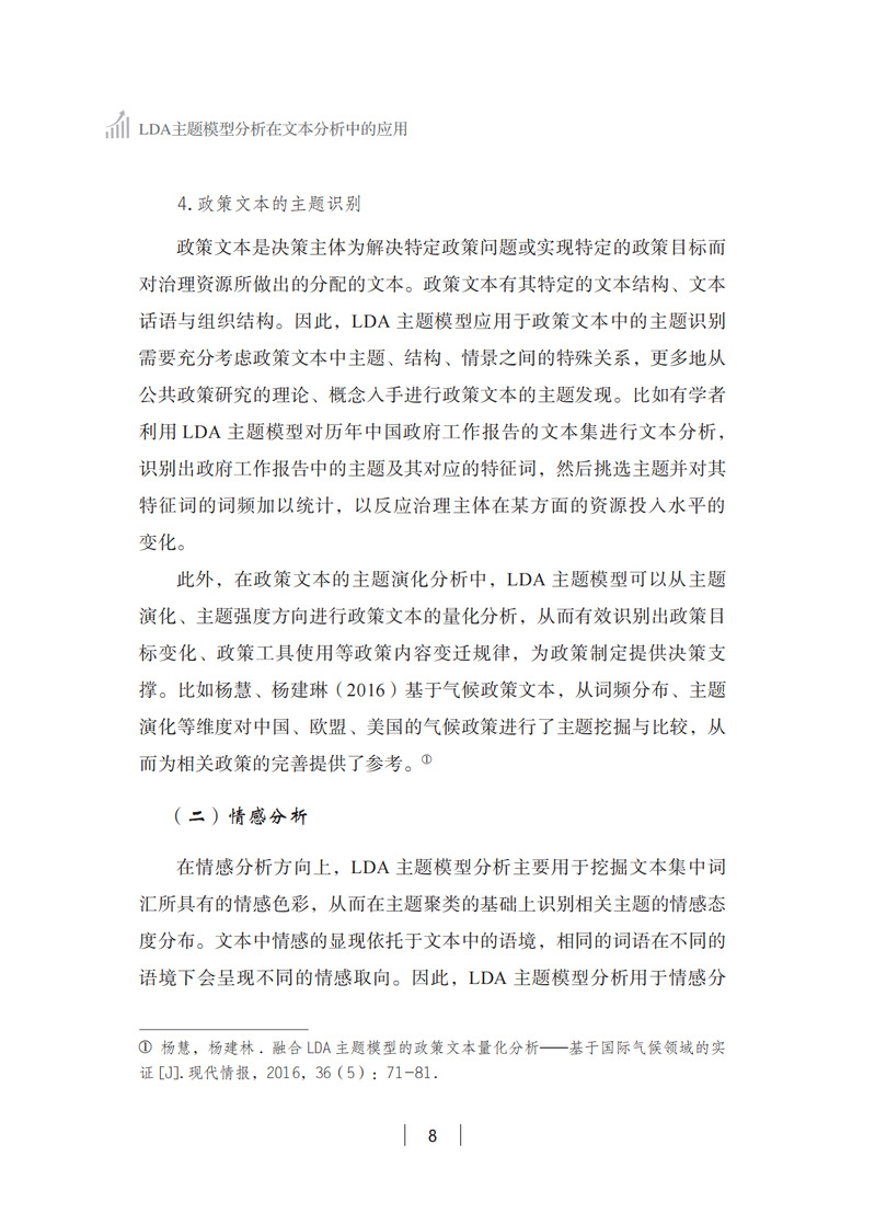 本书稿将LDA主题模型分析应用于文本分析主要是在对文本进行词频统计产生关键词频的基础上,通过对关键词频进行无监督学习,从而在产生的类型分类基础上抽象出被测试文本特征的一种方法。本书在介绍LDA主题模型分析在文本分析中的目的、理论基础、研究设计,并以LDA主题模型分析所收集的某公益救援组织抖音直播的评论文本作为案例,具体说明了机器学习应用于文本分析如何进行研究设计。本书稿具有一定的指导意义和市场价值。
