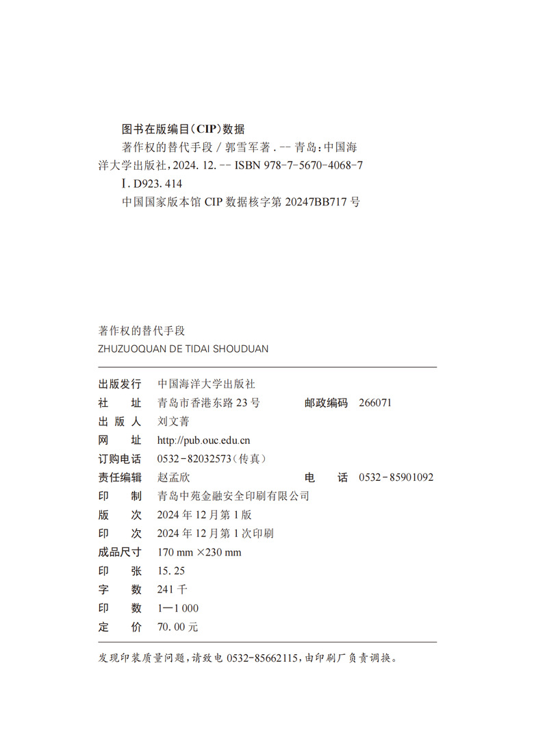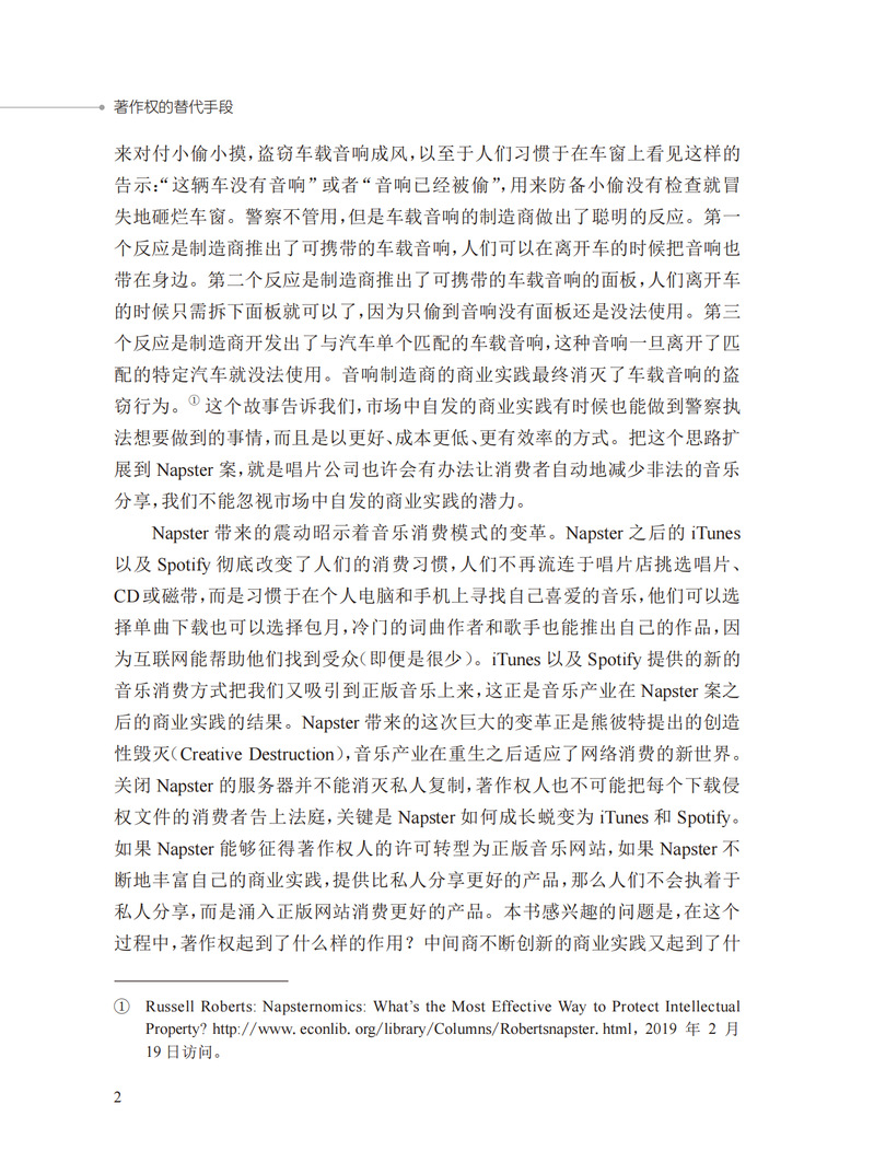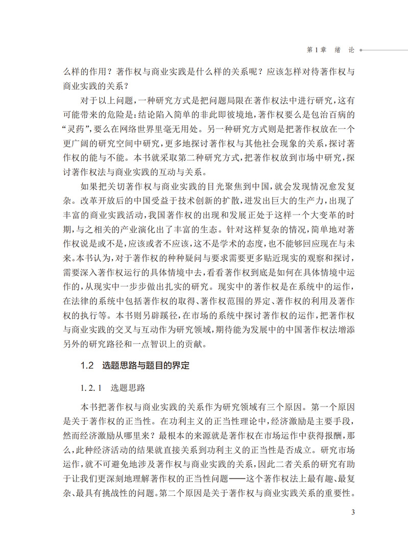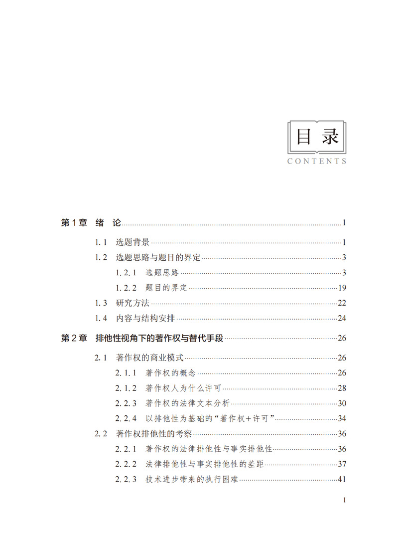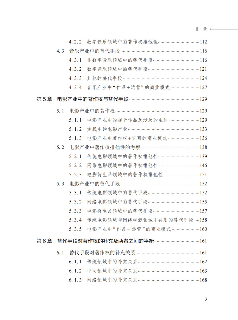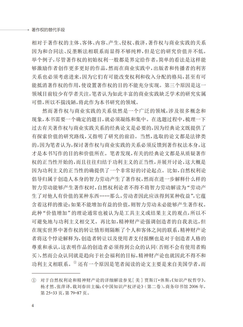 本书选取三个具有代表性的著作权产业—图书出版产业、音乐产业、电影产业—作为研究对象。首先,分析图书出版产业、音乐产业、电影产业中以法律排他性为基础的“著作权 + 许可”的商业模式;其次,考察这三种产业著作权的法律排他性与事实排他性的差距;再次,探讨这三种产业中的替代手段如何弥补法律排他性与事实排他性的差距;最后,从实证和规范两个角度描述著作权与替代手段的关系。