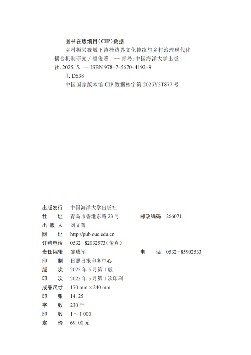 乡村治理现代化是实现治理能力现代化建设的基层工程。在新时代“共建共治共享”社会治理制度与“自治法治德治”结合的基层治理体系中,打造三治结合的乡村治理新格局,形塑以法治、自治、德治相结合多元共治的乡村治理结构,讨论乡村社会治理的现代化转变,具有重要的理论价值和现实意义。本书以西南地区乡村治理真实案例为切入,以乡村治理社会资本理论为视角,通过对西南乡村治理个案的分析,突出以多元共治为抓手的基层治理效能,探索在社会主义核心价值观引领下,乡村治理现代化的实施路径、整合方式和对策措施。