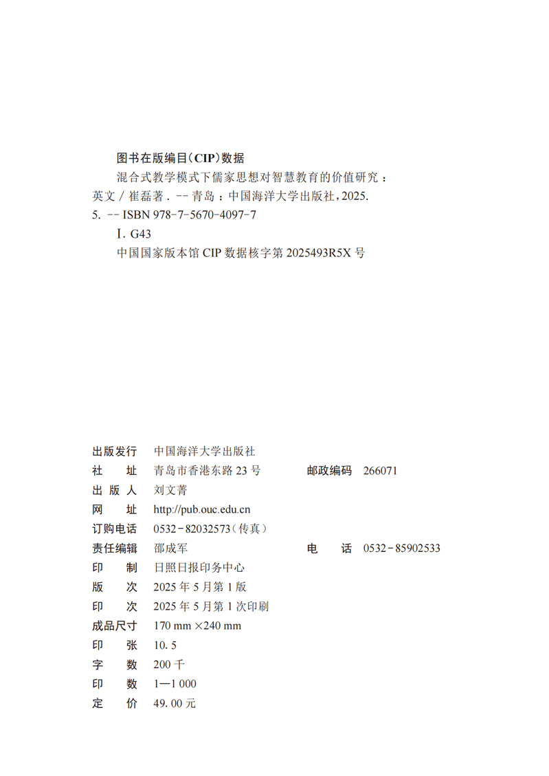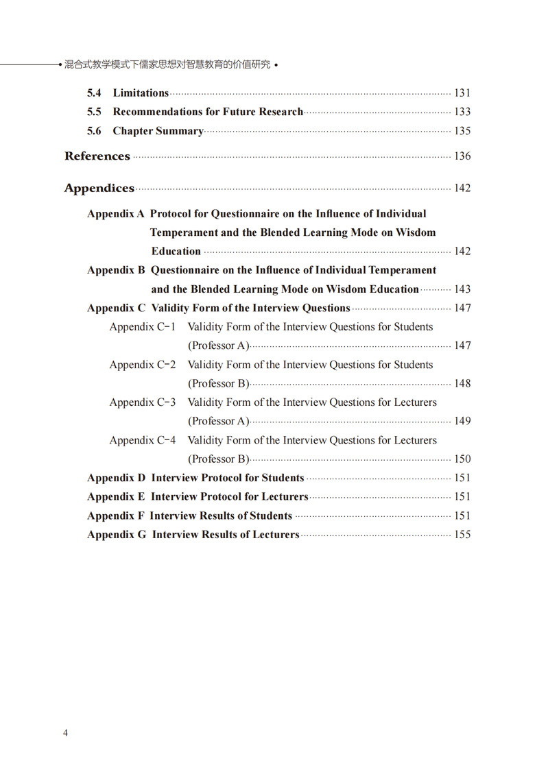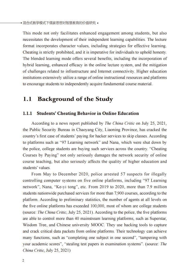 本书深入探讨了混合模式下儒家性情之说对智慧教育的影响,旨在寻求一种新的智慧教育模式。信息技术飞速发展,给教育领域带来了众多机遇,也引发了诸多问题。智慧教育作为一种新的教育形式,其本质是通过科技与人类智慧相结合的方式来培养人才。本研究采用了质性分析为主,量化分析为辅的研究方法,具有探索性、描述性和归纳性。本研究论证了儒家性情之说、人格教育和混合学习模式之间的显著相关性,虽然存在一定的局限性,但对于智慧教育背景下以加强人格教育为目的的混合学习模式具有重要的里程碑意义。