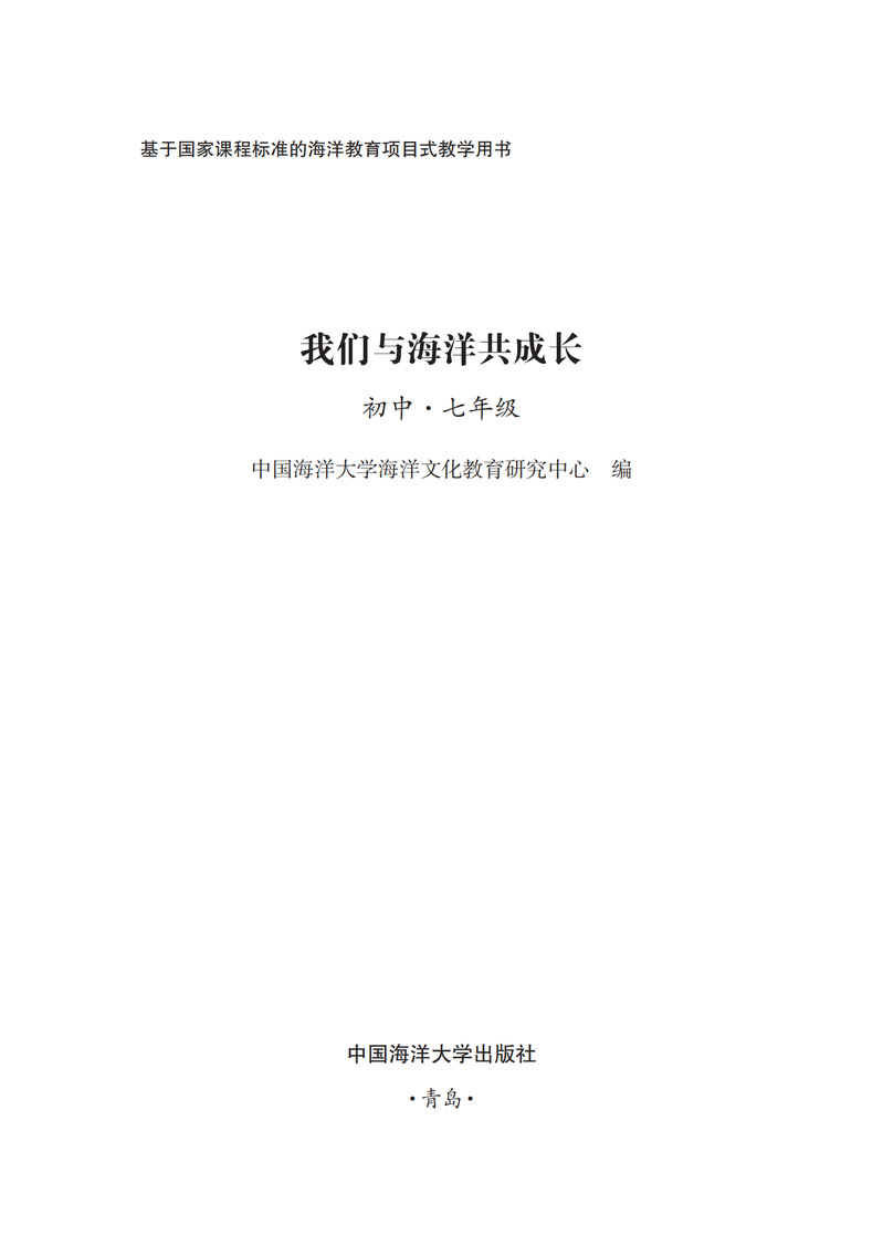 本书是开云电竞网址海洋文化教育研究中心所编的基于国家课程教学的海洋教育项目化学习活动用书,其具体内容为海洋相关知识与七门学科的教学内容紧密结合,设置有项目情境(包括问题导引)和项目活动(一般分为3个分项目活动),以活动性栏目形式呈现等板块,引导学生在解决真实海洋问题的过程中增强海洋意识、发展海洋素养、培养海洋兴趣。本书可供七年级学生自主探究学习使用,亦可供七年级各科任课教师结合学科教学指导学生使用。