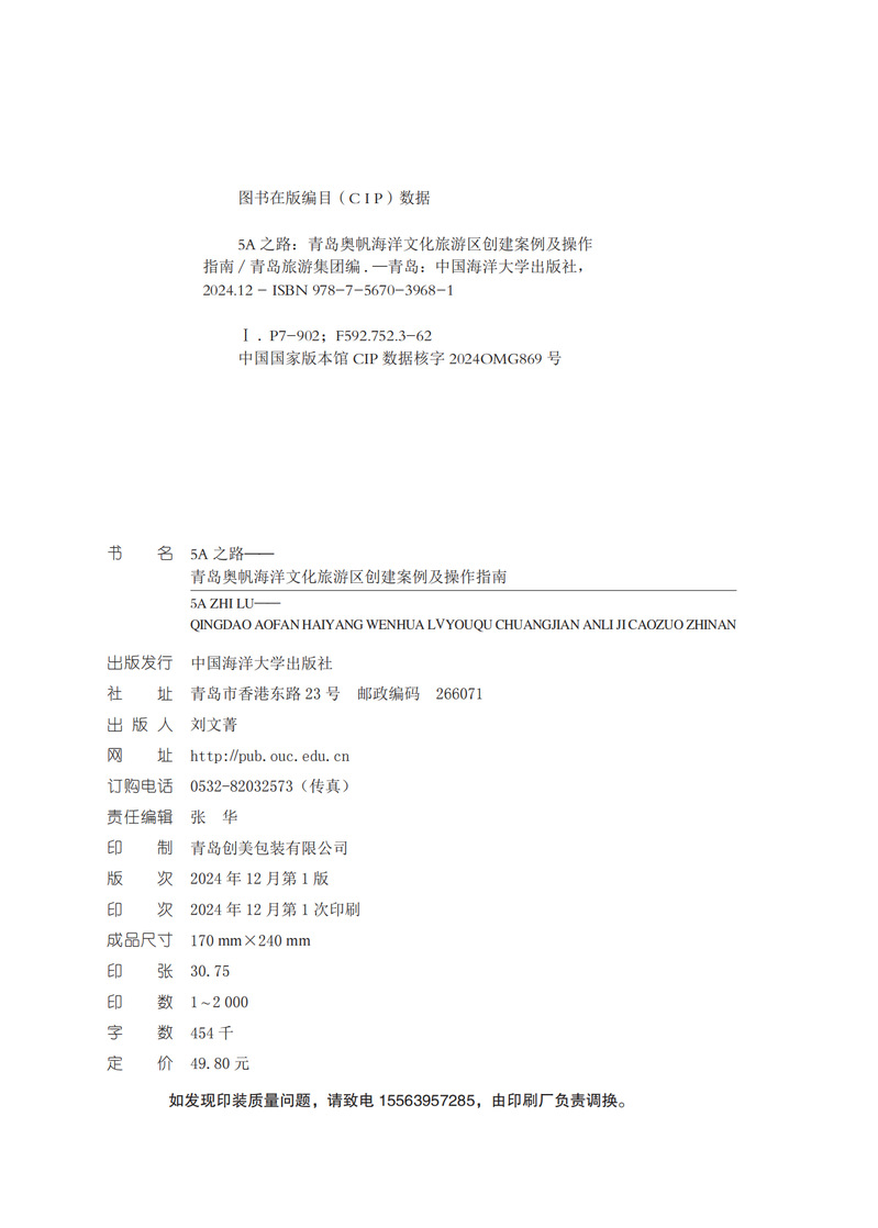 《5A之路——青岛奥帆海洋文化旅游区创建案例及操作指南》是青岛奥帆海洋文化旅游区创建5A景区过程中经验和做法的总结。本书主要包括青岛奥帆海洋文化旅游区介绍、多方协作和运筹帷幄、细节决定成败、经验总结与未来展望四个板块内容,全面展示了青岛奥帆海洋文化旅游区高位推动、政府主导,精准定位、文化引领,系统规划、分步实施,对标对表、精细管理等具体做法,可供关心、支持奥帆旅游的各界人士了解和参考,也可供其他景区借鉴和学习。