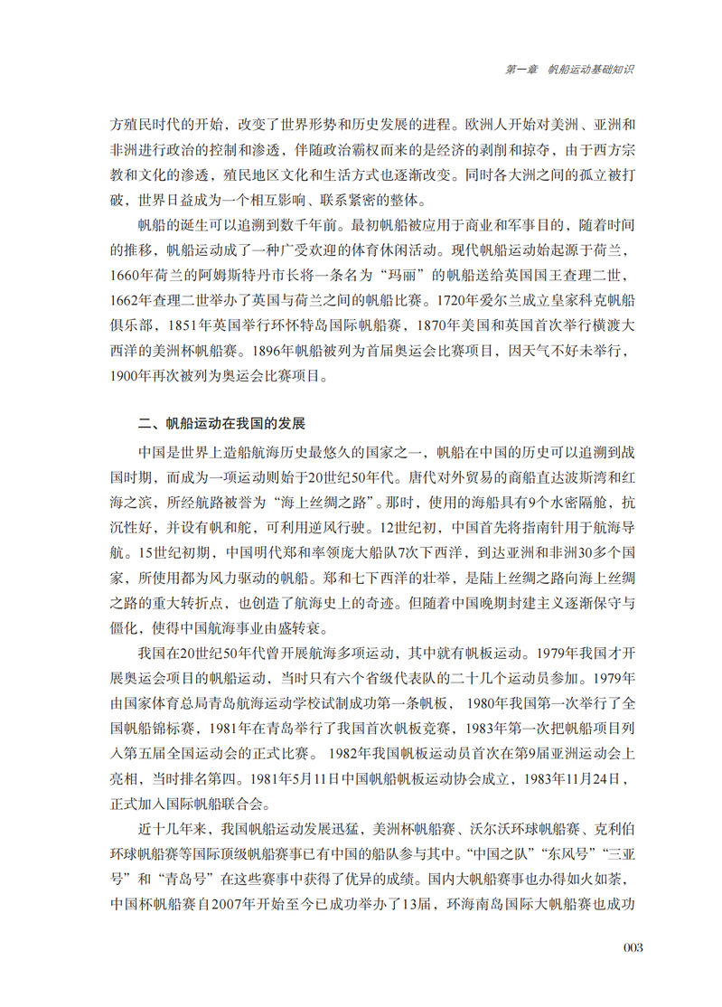 帆船运动是依靠自然风力作用于帆上使驾驭船只前进的一项水上运动。本教材共八章,主要介绍帆船运动基础知识、帆船基本驾驶技术、帆船比赛技术、帆船比赛战术、帆船远洋航行、帆船离岸赛、帆船赛事的组织与管理、帆船竞赛规则等内容。本书作为大学相关专业教材,内容由易至难,深入浅出,对初学者和高水平运动员均适用。