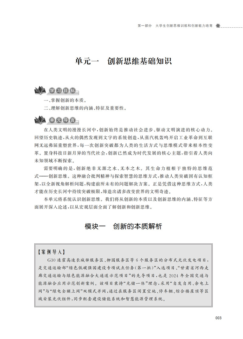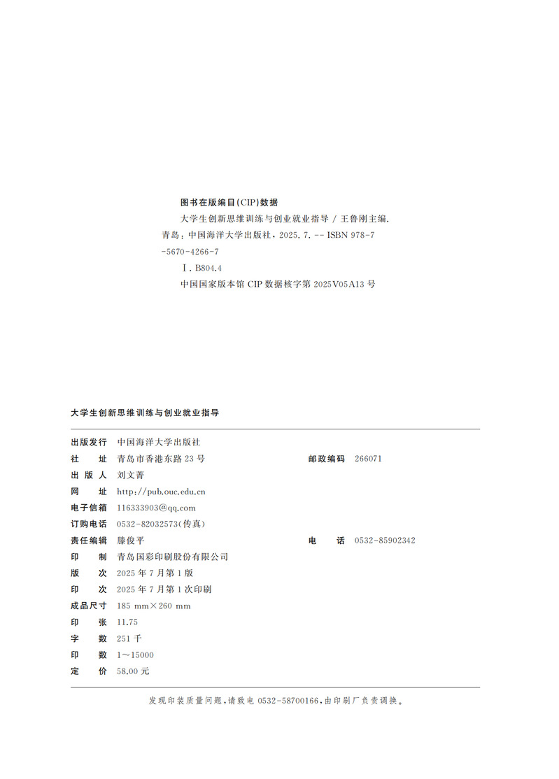 本书由一线实践教师与专业教研室老师合作编写而成,内容包括“大学生创新思维训练”“大学生创业指导”“大学生就业政策与就业指导” 三部分,以案例为主线贯穿全书,紧密围绕大学生学习生活实际,直面常见心理困扰,将最新研究成果与实践经验融入教材,构建特色鲜明的大学生学业与职业发展指导体系,便于学生理解与运用。本书视角独特,遵循完整系统且循序渐进的教学原则,章节安排避免了知行脱节,彰显体验式教学理念。其旨在助力学生系统认知学业与职业规划理论体系,借由鲜活案例实现自我认知,立足个人特质与专业背景开展学业思考,进而形成职业规划自觉意识,精准锚定职业坐标与发展方向。