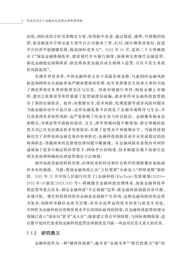 本书通过对金融科技引发的风险进行类型化分析以探讨金融科技监管的理念与原则的转变以及需要实现的法律功能和目标;填充金融科技监管的法理基础和制度体系;促进金融监管理论及其制度体系构建,推动金融监管的创新升级与监管能力的提升,进而丰富和拓展金融法学理论。在新一轮科技革命和产业变革背景之下,金融科技作为技术驱动的金融组织方式给金融领域带来了前所未有的影响,因其在新型信息技术的作用下极易诱发网络安全、业务风险、技术风险、数据安全等多重风险的效应叠加,当前,相对系统、成熟的金融科技监管法律制度亟待构建。