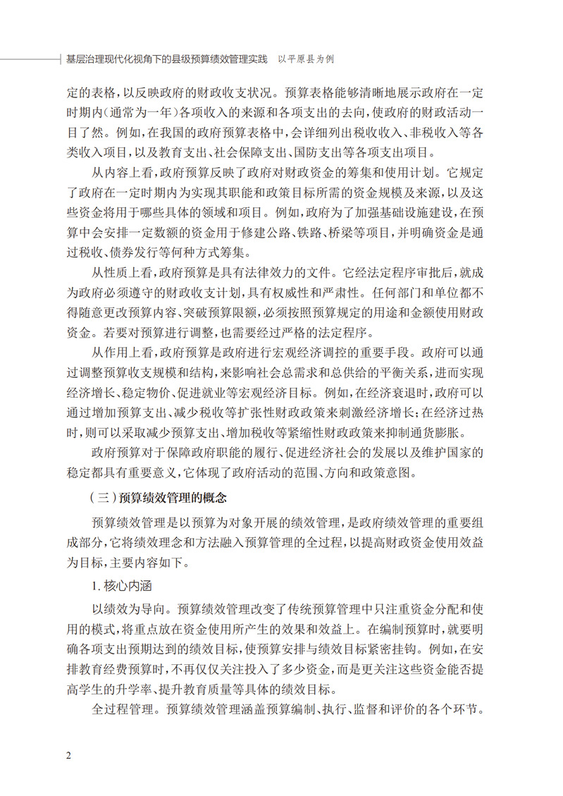 在国家治理现代化与财政体制改革深化的双重背景下,预算绩效管理成为提升基层治理效能的关键抓手。本书以平原县为典型案例,系统呈现了县域层面预算绩效管理的创新实践与改革路径,为基层政府优化资源配置提供了鲜活样本与理论镜鉴。全书以“理论—实践—启示”为脉络,以丰富的一线调研数据与典型案例为支撑,为同类县域提供可复制的改革框架。本书兼具学术性与实操性,适合财政工作者、公共管理研究者及基层治理实践者参考,既为理论界贡献县域治理的深度叙事,也为实践者提供接地气的方法论指南。