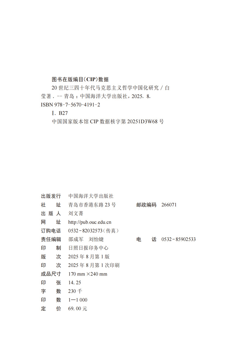 20世纪30—40年代,中国实践迫切需要科学理论的指引,将马克思主义哲学与中国实际相结合,探索中国化的马克思主义哲学重要且迫切。本书聚焦20世纪30—40年代马克思主义哲学中国化问题,从马克思主义哲学与中国哲学的关系、马克思主义哲学的理论传播、马克思主义哲学的理论创新、用马克思主义哲学的方法论指导中国实践四个方面,探讨这一时期马克思主义哲学中国化的基本问题,全面展现了这一时期马克思主义哲学中国化的全貌以及马克思主义中国化的成果。