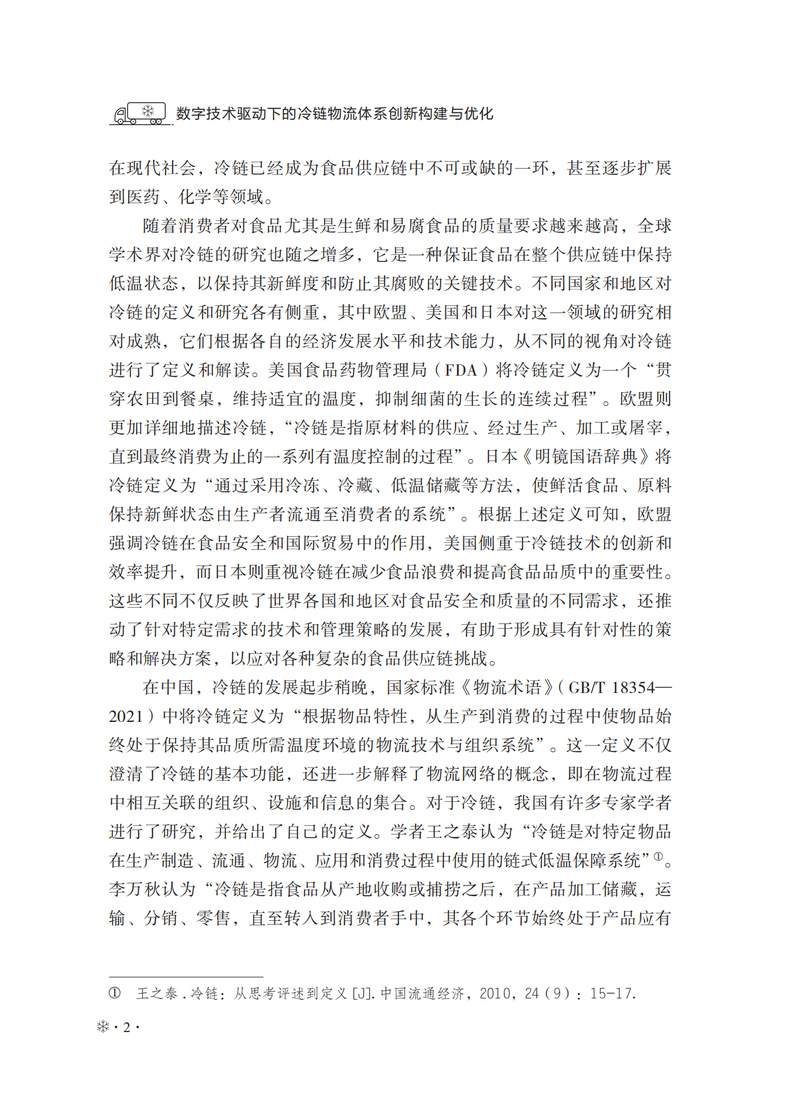 本书首先从数字技术在冷链物流中的应用出发,在供应链管理和物流优化的基础上,进一步阐述了智能物流系统的构建和运行等内容,为后文的阐述奠定了基础。其次,本书对数字化冷链物流的关键技术进行了详细的分析,包括物联网技术、大数据分析、云计算以及人工智能等,探讨了这些技术如何有效地解决冷链物流中的实时监控、追踪、温度控制等问题。最后,提出了一系列创新的解决方案和优化策略。本书以系统工程和信息技术为基础,力求对冷链物流体系的数字化转型进行综合评价,以期为提升供应链的效率和响应能力贡献一点微薄之力。本书具有较强的实用价值和前瞻性,可供从事冷链物流管理、数字化转型及供应链优化的专业人员以及学者作为参考用书使用。