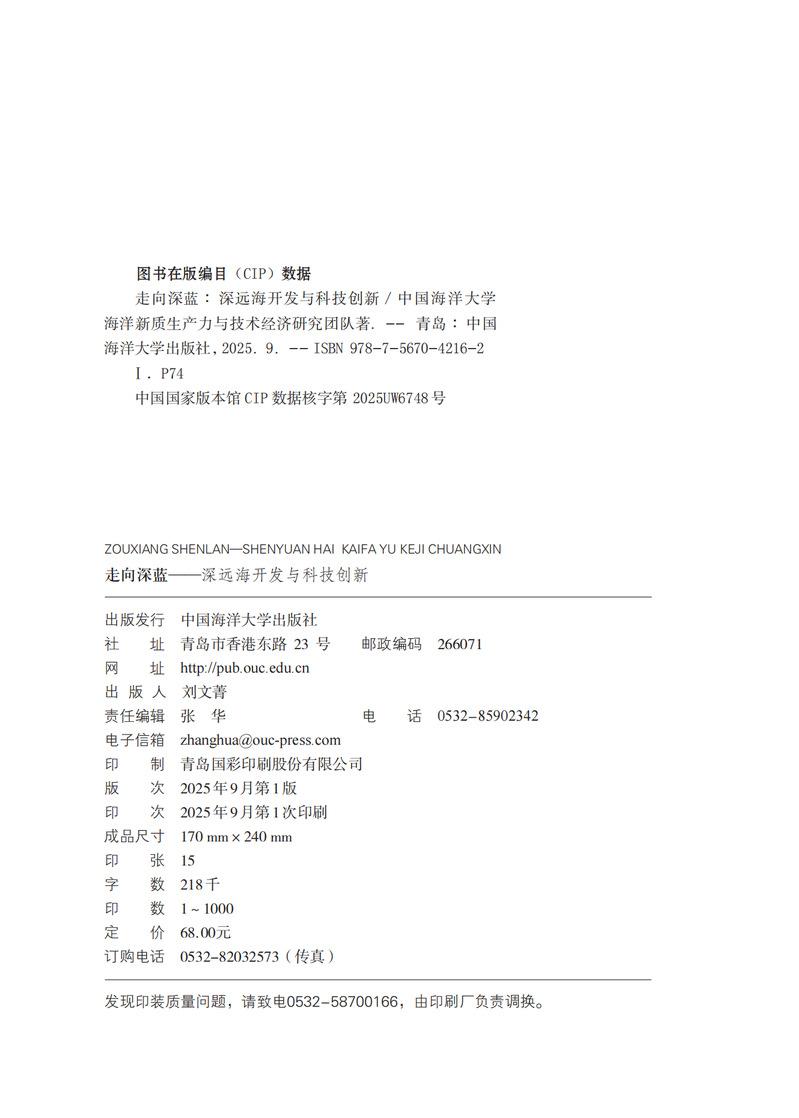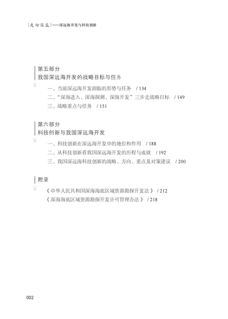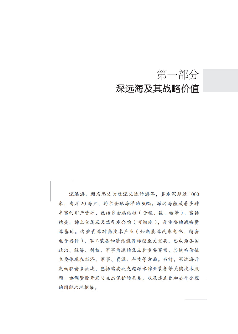 国家管辖海域以外的国际海底和公海区域面积约2.5亿平方千米的深远海占地球表面积的49%,蕴藏着多种自然资源,尚未被充分开发利用。本书介绍了《联合国海洋法公约》中有关规定,国际海底管理局的使命、任务及有关活动,国际上一些国家在深远海的一些资源勘探活动,我国参与国际海底管理局的工作情况,以及科技创新在深远海开发活动中发挥的重要作用。本书可以作为国际深远海相关领域研究人员和学习人员的资料性参考用书,也可以供广大关心这一领域的读者们在业余查找相关问题时作为资料借鉴和引用。