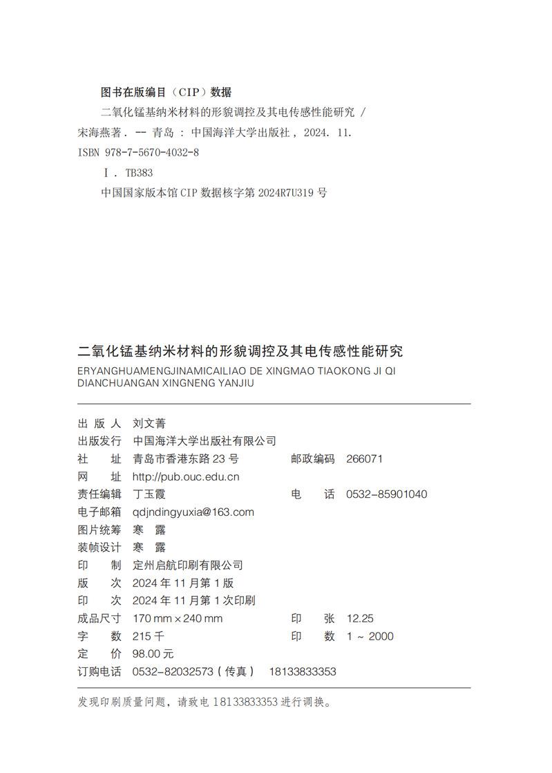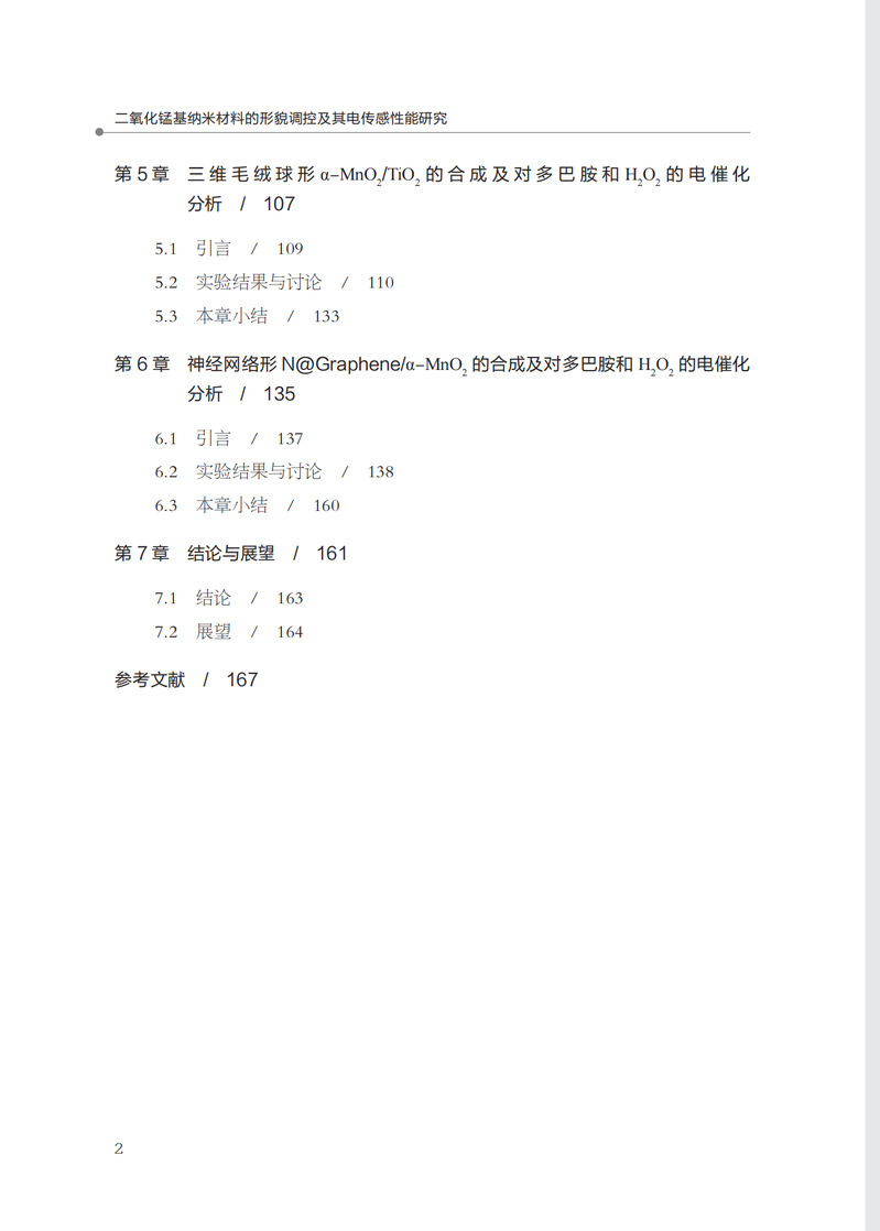 本书属于二氧化锰基复合材料形貌调控及性能研究方面的著作,全书以二氧化锰基复合材料固化性能为研究对象,分析不同改性方法对中空海胆形二氧化锰微观形貌和性能的影响,并结合电化学方法对催化多巴胺和过氧化氢过程中的转移电子数、质子数进行计算。全书包括不同量乙酰丙酮氧钛对绒球形MnO2-TiO2复合材料微观形貌及性能的影响,氮含量对石墨烯类碳材料复合二氧化锰催化性能影响机制,多级结构二氧化锰基复合材料催化多巴胺和过氧化氢等小分子机理研究等内容。对过度金属氧化物微观结构调控研究、功能纳米材料传感性能研究等研究者和从业人员有学习和参考价值。