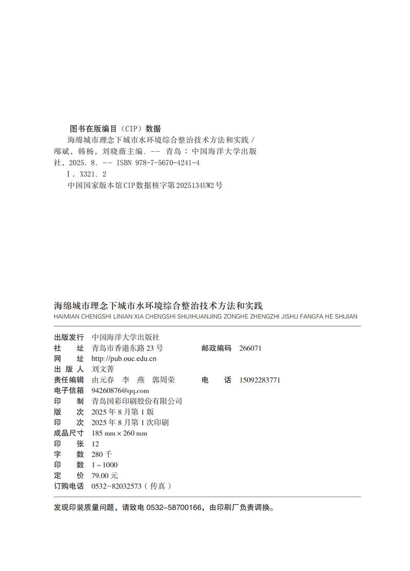 本书分为三篇,第一篇城市水环境综合整治技术理论方法体系,包含第一章 海绵城市,海绵城市的缘起,海绵城市在我国的发展;第二章城市水环境,城市水资源第二节城市水环境,城市水生态, “三水统筹”系统;第三章城市水环境综合治理技术,城市雨污分流与截污纳管,城市雨水资源化利用,再生水回用技术,水体修复与净化技术,生态恢复和景观构建技术;第二篇城市水环境综合整治典型案例,分为青岛市“五水绕城”生态环境提升项目,李村河和张村河流域生态环境综合治理工程,墨水河龙泉河生态综合整治工程,芜湖大阳垾海绵城市提升工程四章;第三篇总结与展望,包含城市水环境综合治理模式和流域智慧化管控技术两章。