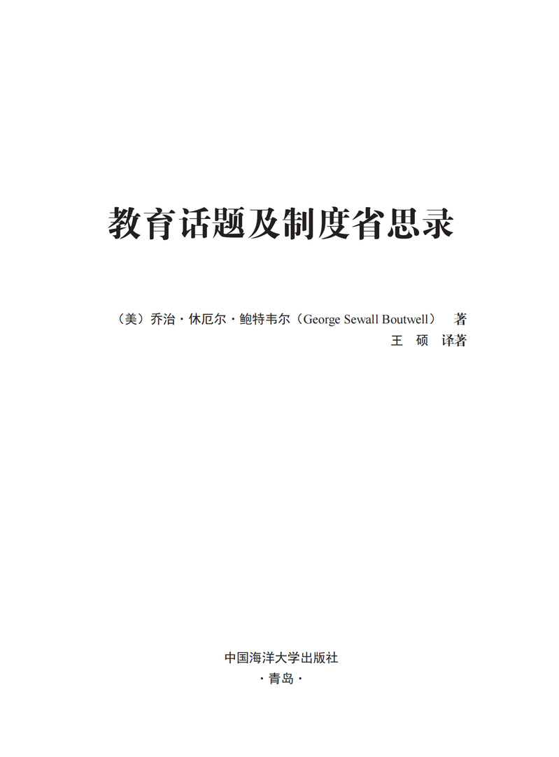 本书作者乔治·休厄尔·鲍特韦尔(George Sewall Boutwell)(1818—1905年)是美国教育领域的杰出作家,在本领域著述丰富,影响巨大。在本书中,鲍特韦尔将自己的从政经历与对教育改革的愿景交织在一起,对教育制度的演变及其社会影响进行了探讨。作者主张建立一个既能促进道德成长,又能促进智力成长的教育制度,并对这种教育制度的设计、课程的开发等进行了深入分析,兼具历史视角与前瞻思想。本书涉及众多十九世纪教育的话题,对于了解当时的教育理念和实践具有重要参考价值。