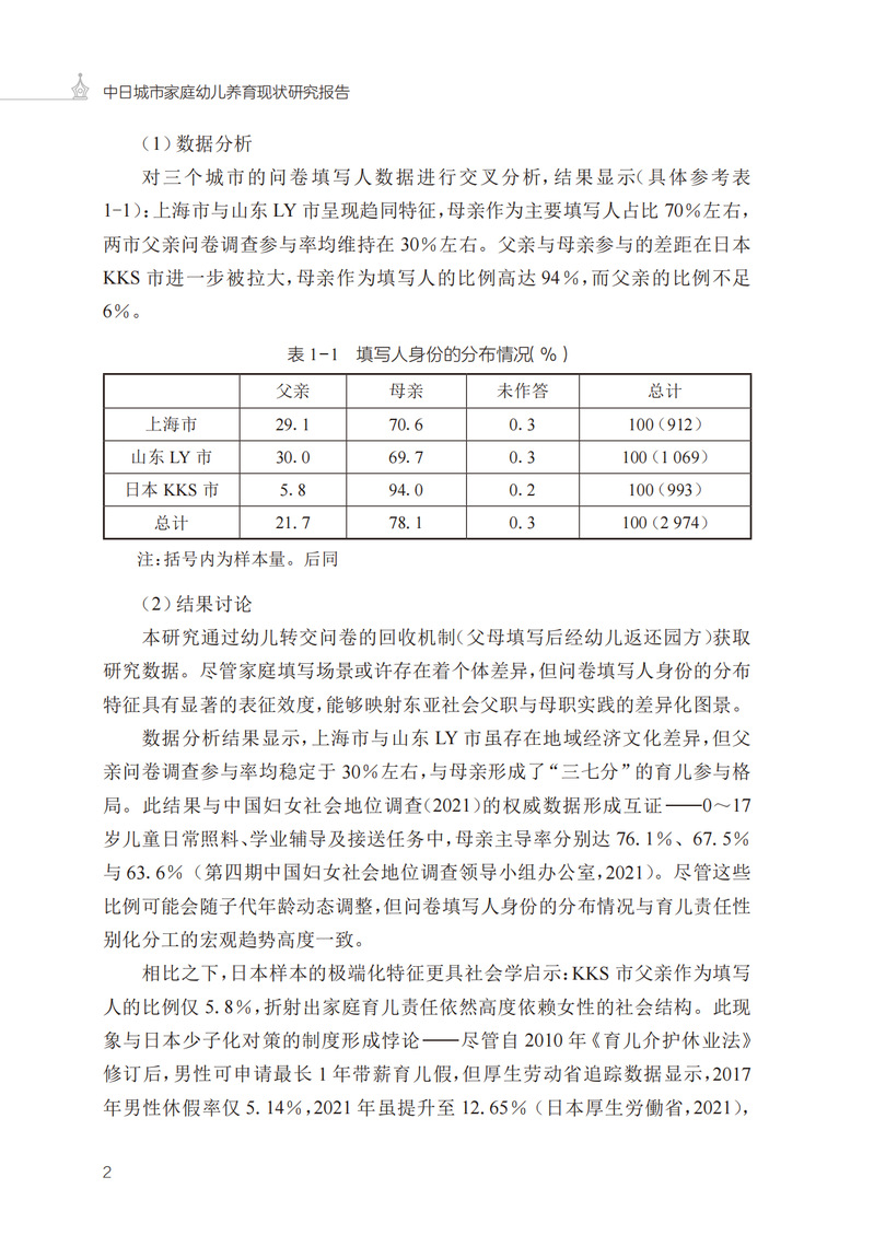 《中日城市家庭幼儿养育现状调研报告》将基于中日两国三地区(日本北九州市、中国上海市、中国山东省LY市)的近3000个幼儿家庭开展的跨区域调查数据,利用实证的分析方法,从家庭养育环境(家庭结构、学历工作、经济状况)、养育现状(焦虑内容及原因、互动模式、投入情况、培养目标和策略)、祖父母参与情况等多个维度,对中日两国(三个城市)城市家庭幼儿养育现状进行系统对比,并以跨文化视角,探讨中日两国三个城市之间存在的异同与各地经济发展程度和社会文化背景之间的内在关联。