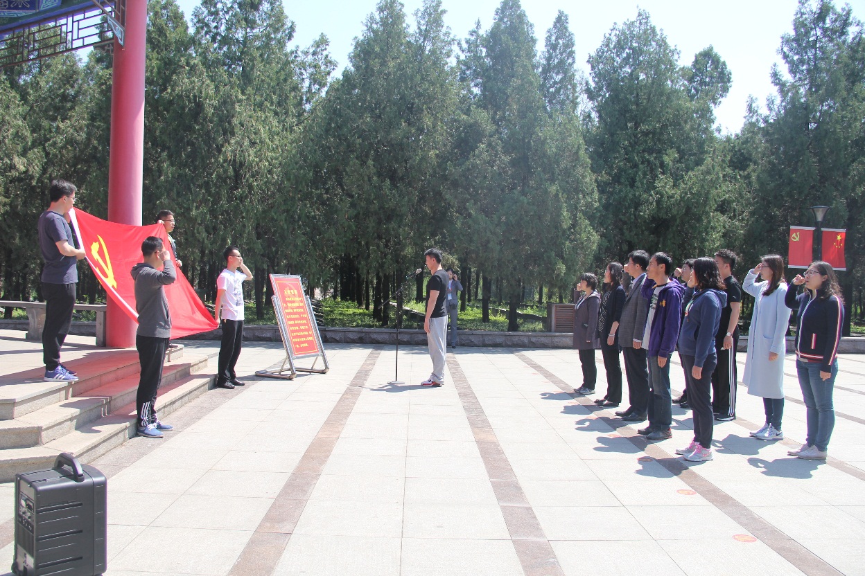 “我志愿加入中国共产党,拥护党的纲领、遵守党的章程……”人事处党支部全体党员铿锵宣誓的声音回响在孟良崮下。