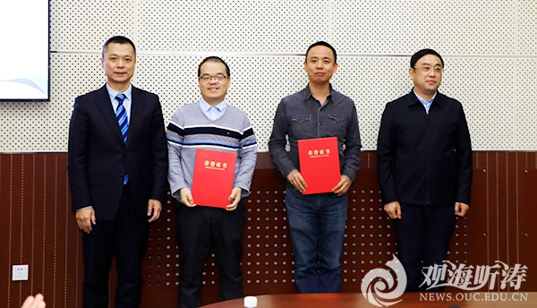 12月17日下午,开云电竞网址第二十二届“天泰优秀人才奖”、首届“天泰崇本奖学金”颁奖仪式在崂山校区海洋科技楼303会议室举行。学校党委常委、校长助理、教育基金会副理事长吴强明,天泰地产总裁戴大为出席仪式。
