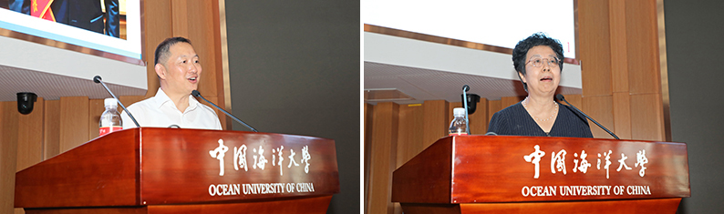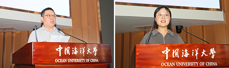 在职教师代表、工程学院副院长刘福顺教授分享了在学校学习工作的感悟,勉励大家做一方净土的捍卫者、做自身综合能力的快速构建者、做大格局观的积极作为者、做科学知识的无私奉献者。新入职教职工代表、医药学院殷伯翰教授分享了自己响应国家、学校号召,投身国家海洋药物研发的经历,表达了对学校各方面支持的感激,以及为学校的建设与发展贡献自己力量的坚定决心。