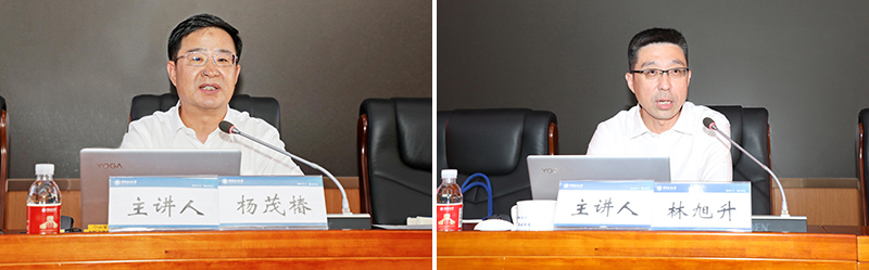 林旭升代表学校对新入职教职工表示欢迎,希望大家赓续世纪海大荣光,加快建设一流大学;落实立德树人根本任务,努力培养担当民族复兴重任的时代新人;传承优良传统,争做新时代海大“大先生”。他表示,今年10月25日,学校将迎来建校100周年,新百年新征程,希望新入职教职工以实际行动书写好“教育强国,高校何为”的海大答卷。林旭升以《隆重庆祝百年华诞 加快建设特色显著的世界一流大学》为题,介绍了学校的百年历史、发展现状,展望了学校的发展愿景和目标;以《深入推进师德师风建设,推动教师队伍高质量发展》为题,介绍了学校师德师风建设的举措与成效,阐明了师德师风建设的重要性和紧迫性。他还带领大家学习了《新时代高校教师职业行为十项准则》,勉励大家为培养堪当民族复兴重任的时代新人、实现中华民族伟大复兴作出贡献。