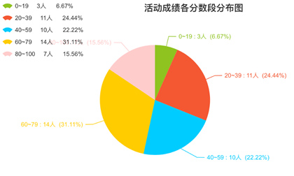 本次团小组共有44人参与在线答题,学生参与度达90%以上。题目内容以两会及2018年两会相关时政热点为基础,涉及宪法内容、农村扶贫、大学生创业、反腐败斗争、改革开放及生态文明建设等方面,另外还包含有一道调研题,问题的设计选取广泛参考了各团小组的讨论结果。其中大部分同学的答题成绩集中在60-79分数段,另外80-100分数段的同学共有7位。从同学们的答题情况看出,大家对宪法内容和人大与政协的了解不够,宪法是国家的根本大法,是治国安邦的总章程,适用于国家全体公民,是特定社会政治经济和思想文化条件综合作用的产物,规定国家的根本任务和根本制度,即社会制度、国家制度的原则和国家政权的组织以及公民的基本权利义务等内容,与我们每一位公民息息相关,所以要求每一位团员更应该学习宪法,了解宪法内容,而人大与政协的基本性质也应该作为尝试被广大团员熟悉。这要求我们支部在今后的学习中要着重学习基础知识,争取做到宪法内容人人了解。最后,从调研情况看出同学们最关心的依次为“大学生创业”、“双一流学科建设”以及“生态文明建设”等与自身利益相关者居多。在反腐败斗争、农村扶贫等方面的同学们关心不足。
