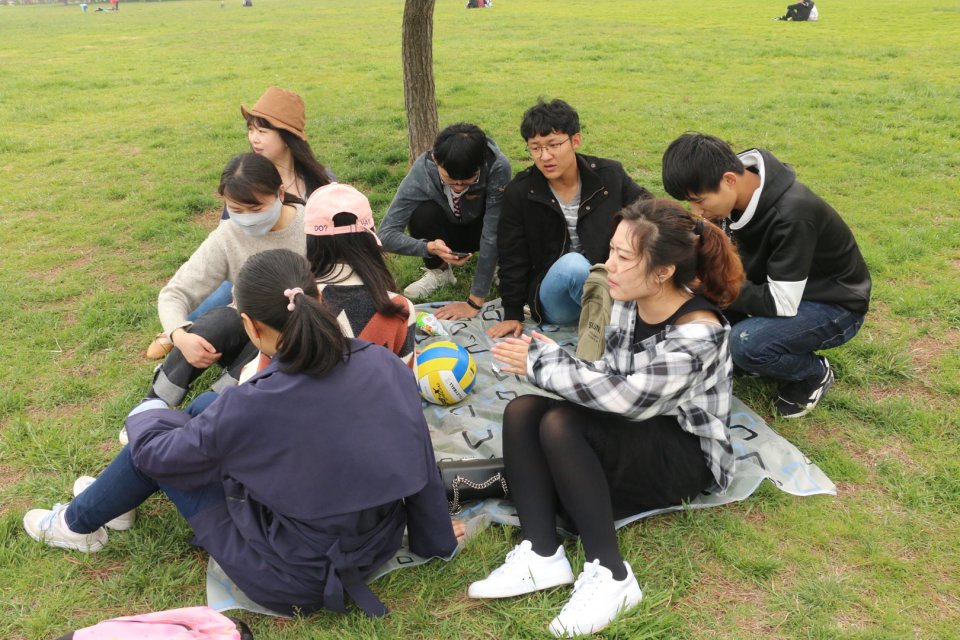 “学习新精神”逛三园是班委组织的户外集体游戏,活动于5月12日3:00至5:00在汇泉广场大草坪开展,采用自愿报名的方式参与。游戏内容当中,同学们男女相间围坐成一个圈,游戏主题摘取中央的最新精神,让同学们依次说出五四青年应有的精神风貌,并对其内涵简单阐述,大家进行座谈交流分享,对习近平“五四青年节”在北大的演讲有了更深一步的了解。