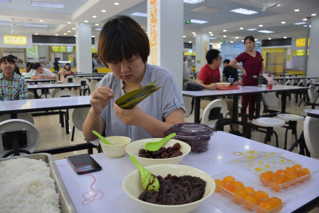 短短的两个小时,包进粽子里的何止是糯米和蜜枣,还有大家对端午的热情和欢乐。在大约三个小时的加工等待后,生活部人员将煮熟的粽子分送到团委、老师办公室和宿舍楼。同学表示,无论粽子是大的、小的、好看的、不好看的,尝起来都是辛勤劳作的粽香。